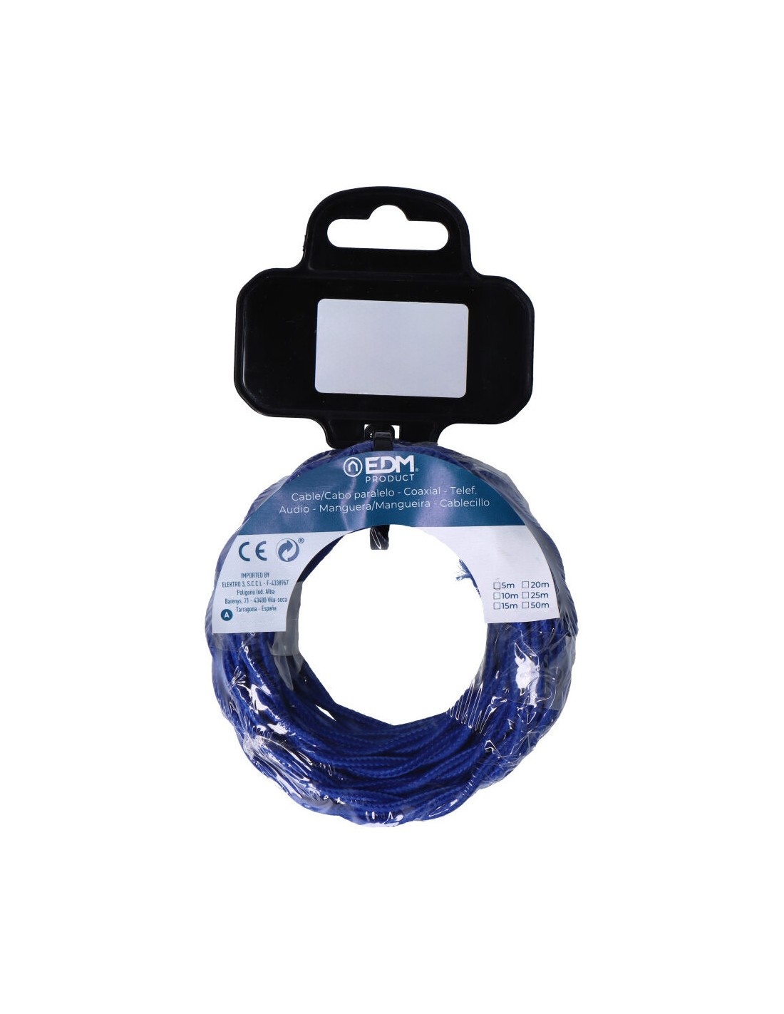Carrete cable textil trenzado h03vv-f 2 x 0,75 mm c-75 azul, 5 m