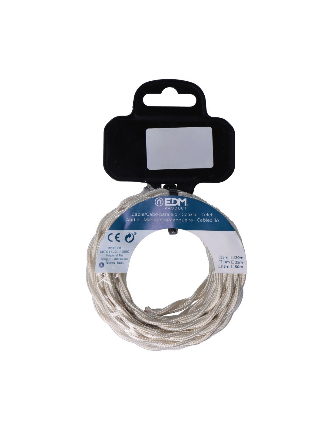Carrete cable textil trenzado h03vv-f 2 x 0,75 mm algodón, 5 m