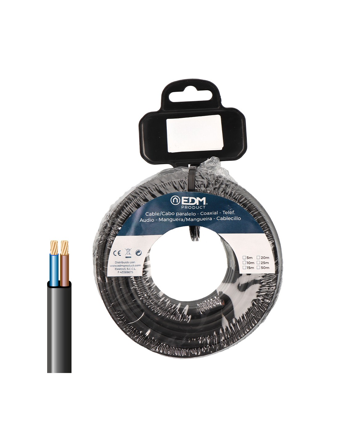 Carrete cable paralelo plano vvk(h2) 06/1kv 2 x 2,50 mm negra, 20 m. especial portalamparas feria.