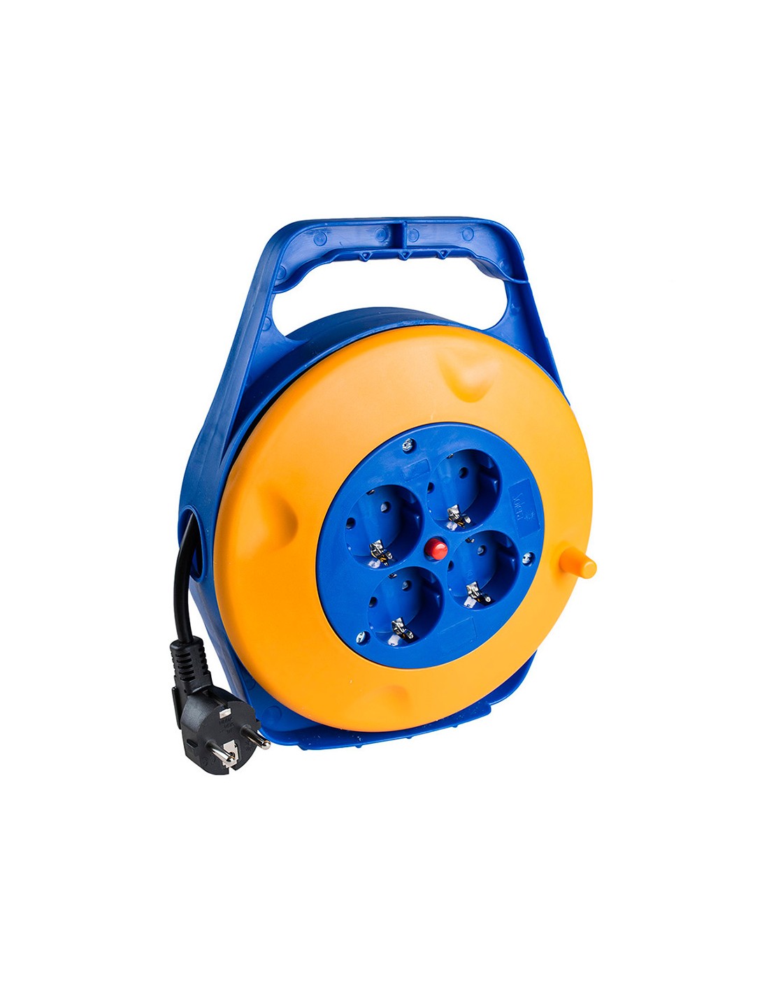 Enrollacable 10m 3x1mm con 4 tomas bipolares con t/tl solera. potencia maxima admisible extendido 3000w, potencia maxima admisible enrollado 1000w. 2p 16 a 250 v. tipo de cable h05vv-f 3x1mm. 7412/1