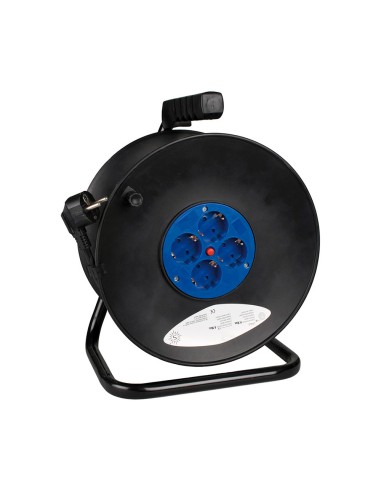 Enrollacable 50m 3x1,5mm con 4 tomas bipolares con t/tl solera. potencia maxima admisible extendido 3500w, potencia maxima admisible enrollado 1200w. 2p 16 a 250 v. tipo de cable h05vv-f 3x1,5mm 7427/2