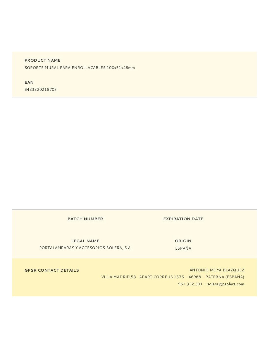 Soporte mural para enrollacables 100x51x48mm solera agujero de sujecion del enrollacable: ø20mm ø para tornillo: 5mm. material aislande libre de halogenos. sop-7000