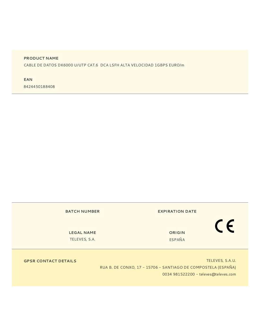Cable de datos dk6000 u/utp cat.6 dca lsfh alta velocidad 1gbps euro/m