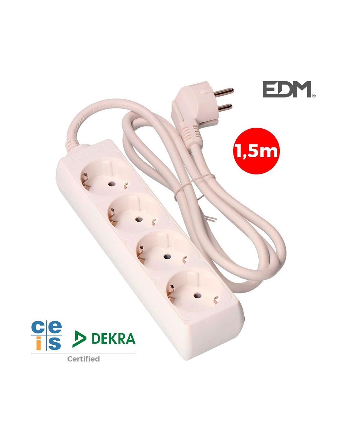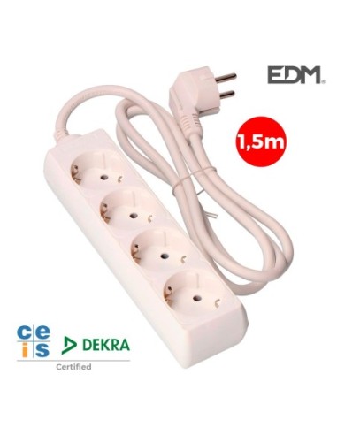 Base múltiple 6 tomas 2p+t con interruptor luminoso, 3 m de cable h05vv-f 3g1,5 mm, blanca
