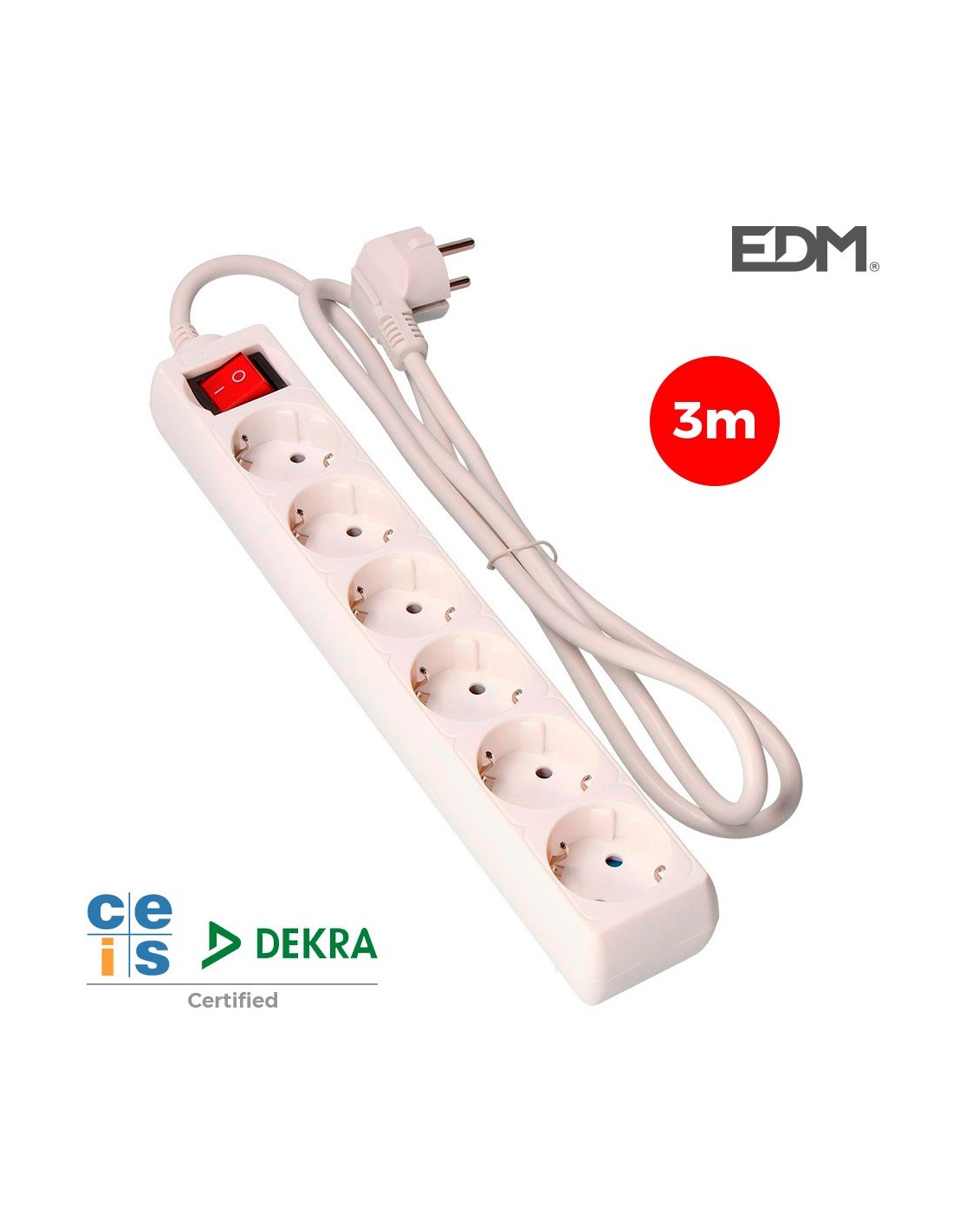 Base múltiple con 3 tomas 2p+t, con interruptor luminoso, 1,5 m cable h05vv-f 3g1,5 mm,...