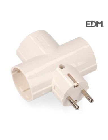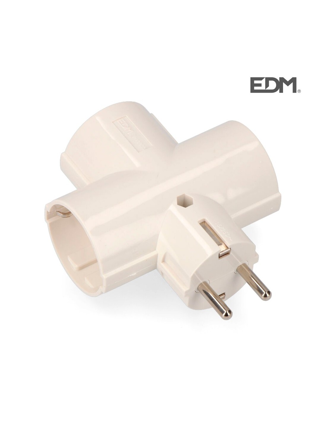 Base múltiple, 3 tomas schuko 2p+t, 3 m de cable h05vv-f 3g1,5 mm 16a 250v~ 3680 w, blanca