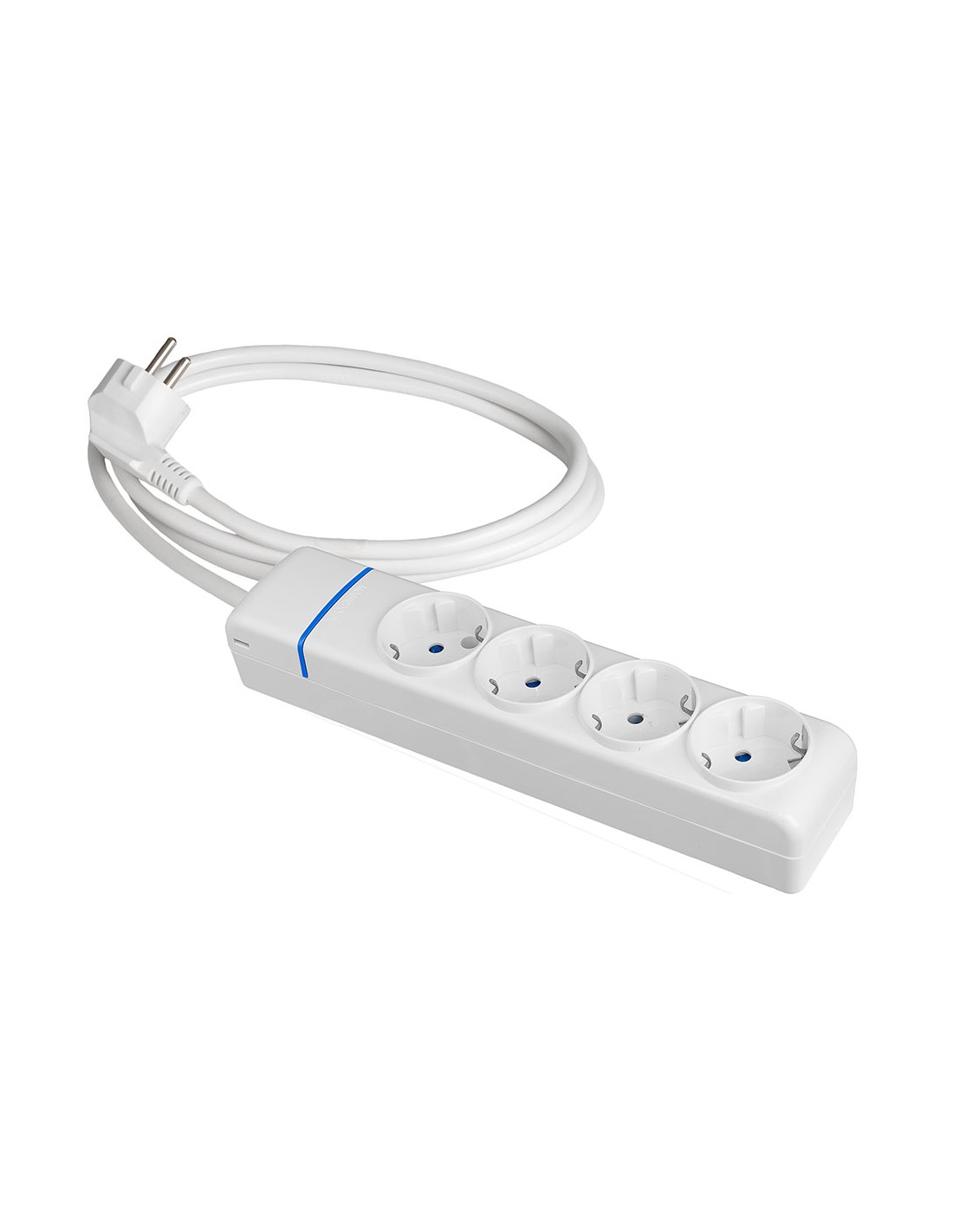Base múltiple con 4 tomas tipo schuko, máx 3680 w, 850c, 1,5 m de cable h05vv-f 3g1,5 mm, ip20 con agujeros para fijación por tornillos a la pared y orificios para fijación mediante bridas a tubos, policarbonato, serie ion, blanca