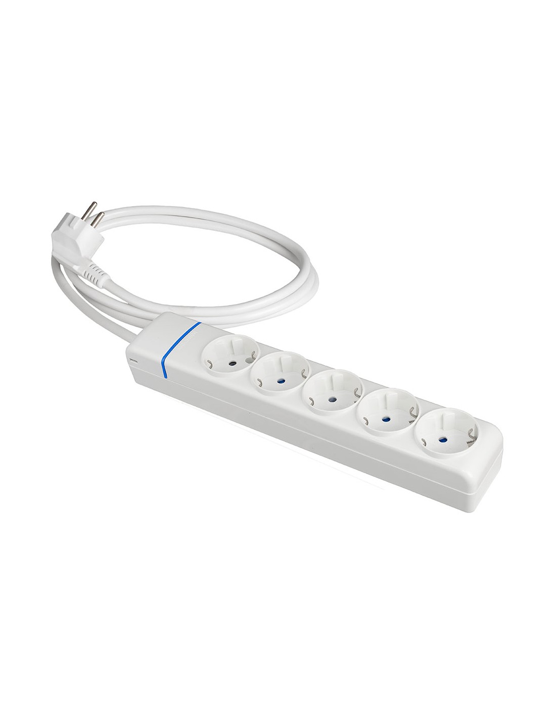 Base múltiple con 5 tomas tipo schuko, máx 3680 w, 850c, 1,5 m de cable h05vv-f 3g1,5 mm, ip20 con agujeros para fijación por tornillos a la pared y orificios para fijación mediante bridas a tubos, policarbonato, serie ion, blanca