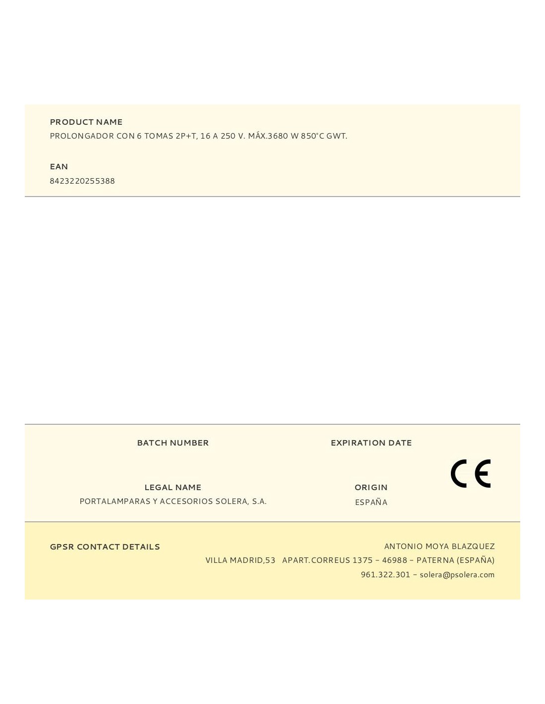 BASE BIPOLAR 6 TOMAS CON T-T LATERAL 16A 250V COLOR BLANCO.