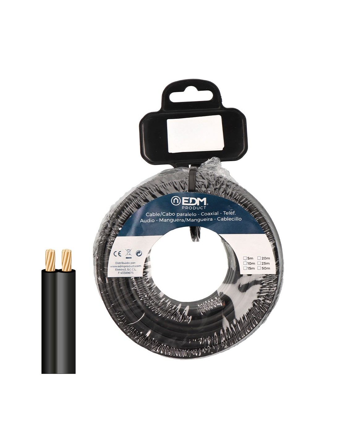 Cable paralelo 2x0,75mm negro, rollo 25m, tensión nominal 48v, para la interconexión de audio, video y similares