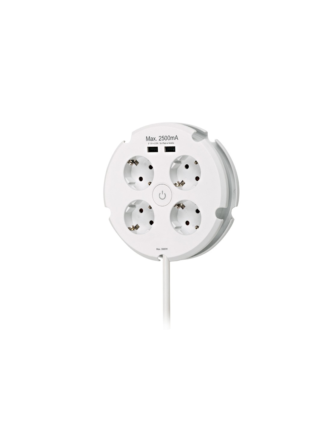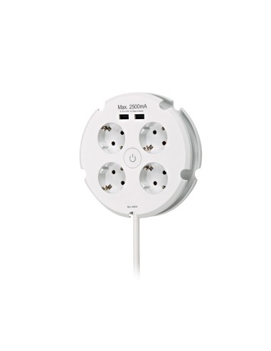 Base múltiple schuko blanca combi 4 tomas schuko 16a 250v + 2 usb ( 2,5a) serie 10, con 1,5 m de cable h05vv-f 3g1,5 mm, blanca ø16 x 4 cm