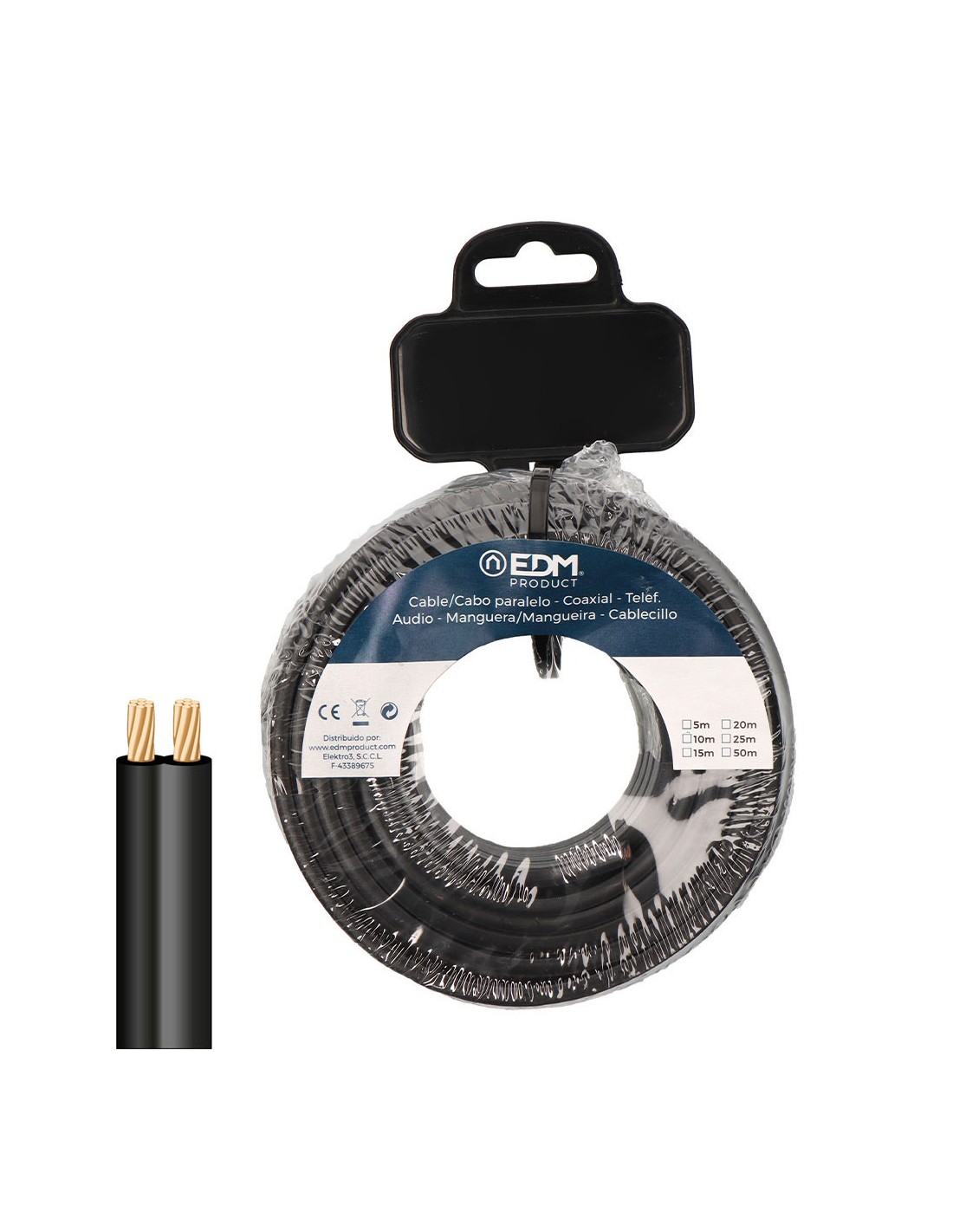 Cable paralelo 2x0,75mm negro, rollo 5m, tension nominal 48v, para la interconexión de audio, video y similares