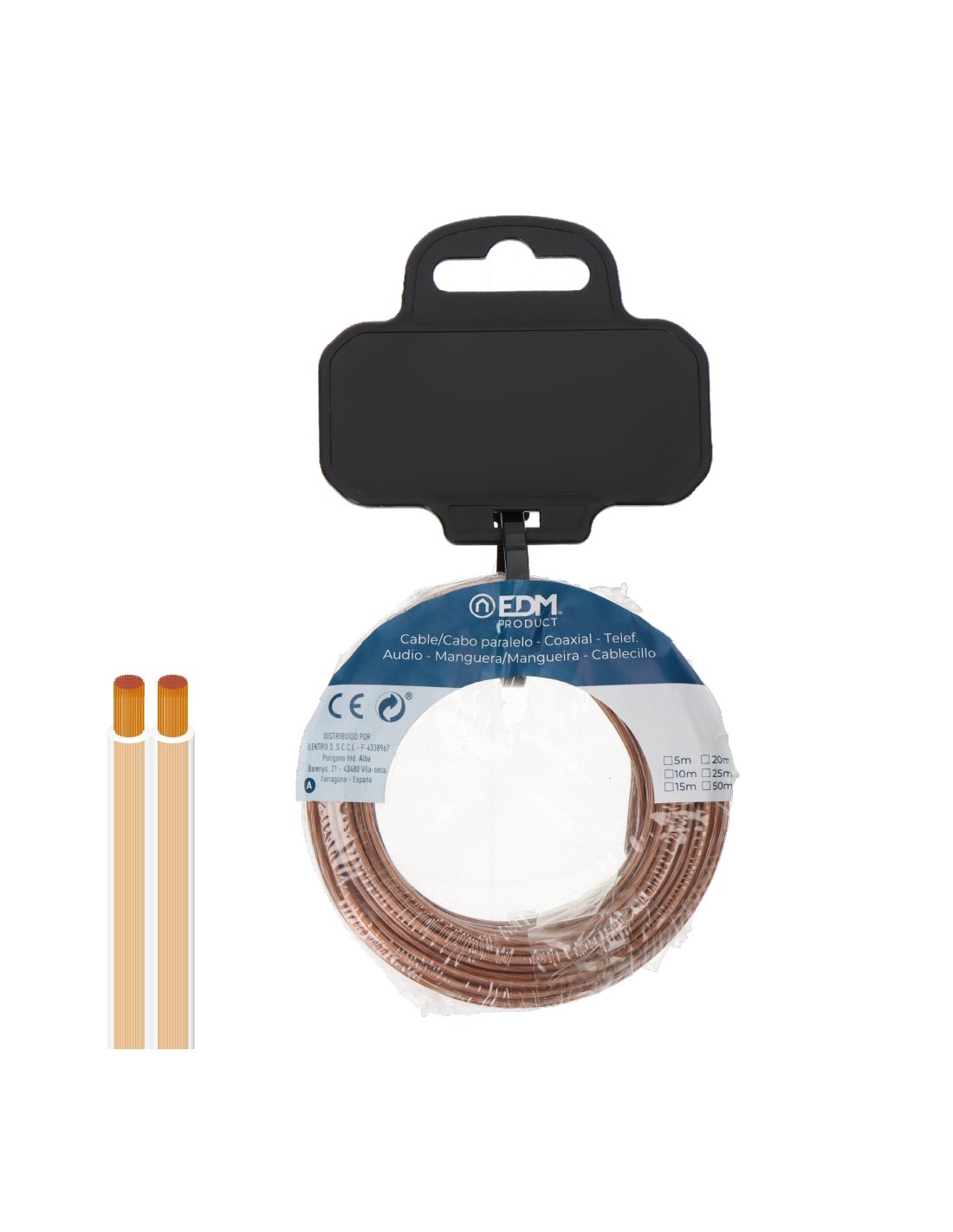 Cable paralelo 2x0,75mm transparente, rollo 50m, tensión nominal 48v, para la interconexión de audio, video y similares
