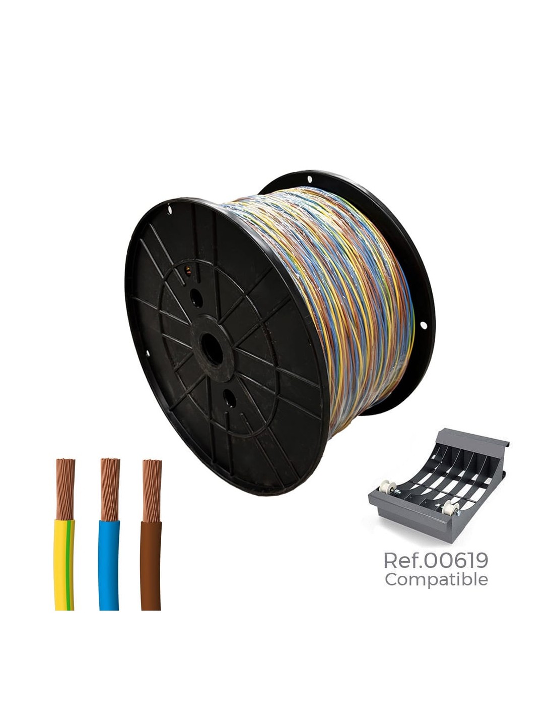 Cablecillo trenzado h07z1-k 3 g 2,50 mm 3 colores, 200 m de cada cable, total 600 m azul, marrón y bicolor. tensión nominal 450/750v. bobina grande 400 x 200 mm