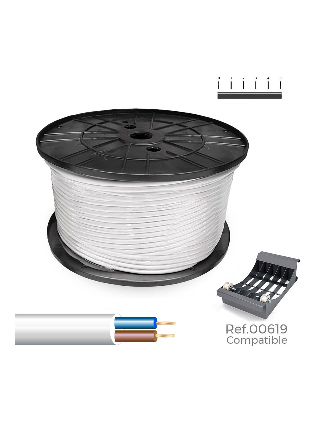 Manguera tubular h05vv-f 2 x 1,00 mm blanca, 300 m. tensión nominal 300/500v. bobina grande 400 x 200 mm
