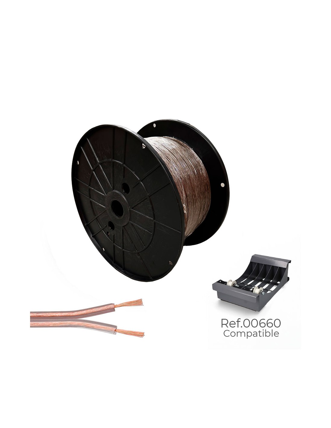 Cable paralelo 48v 2 x 0,75 mm transparente, carrete de 500 m, tensión nominal 48v. bobina mediana 260 x 150 mm.