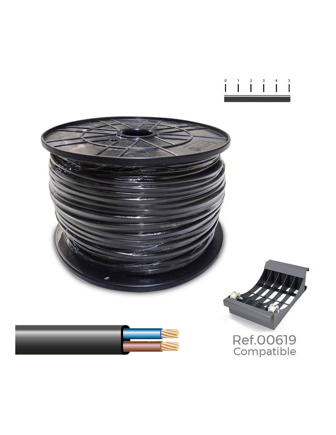 Manguera plana h03vvh2-f 2 x 0,75 mm negra, 400 m. bobina grande 400 x 200 mm