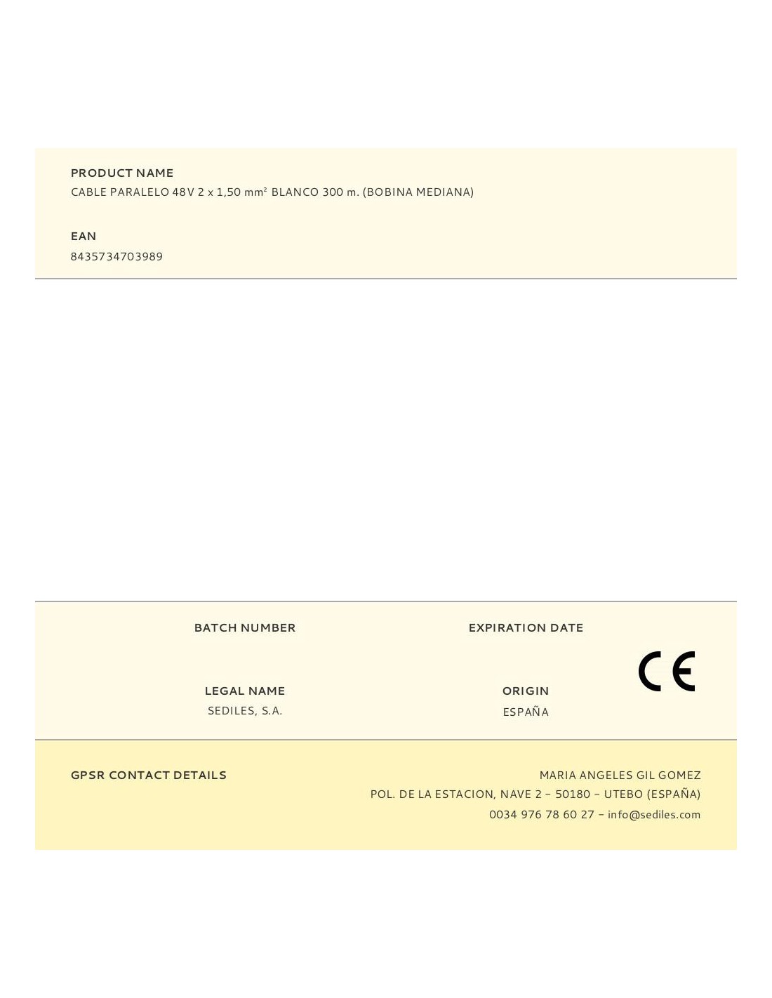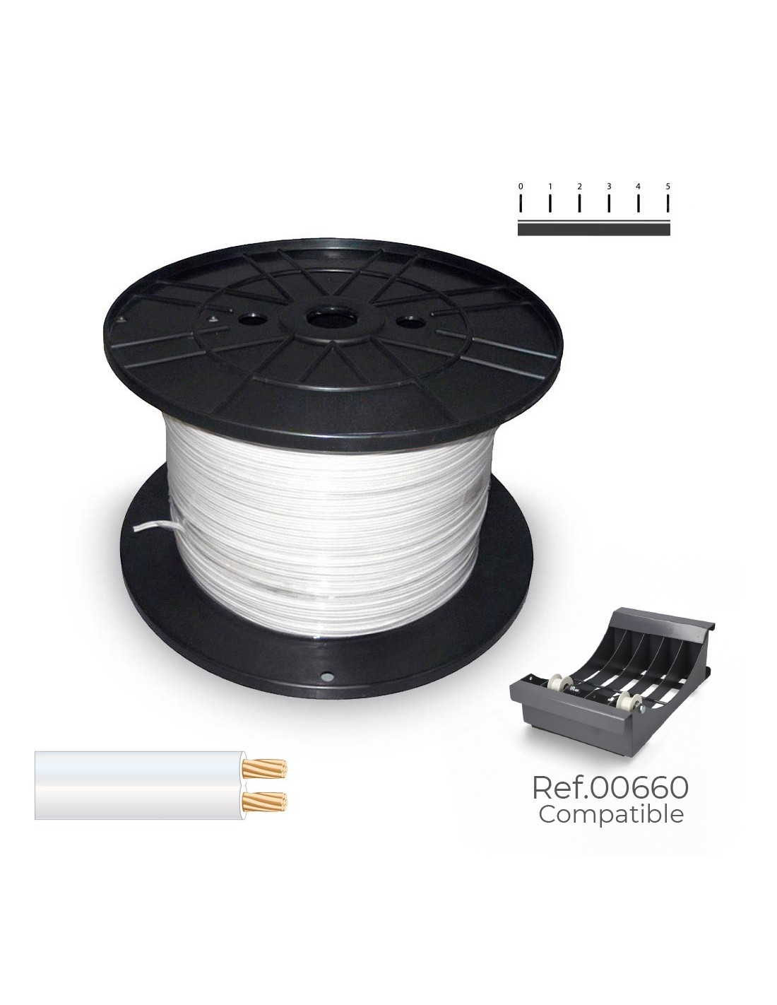 Cable paralelo 2 x 1,50 mm blanco, carrete de 300 m, tensión nominal 48v, para la interconexión de audio, video y similares, bobina mediana. 260 x 150 mm
