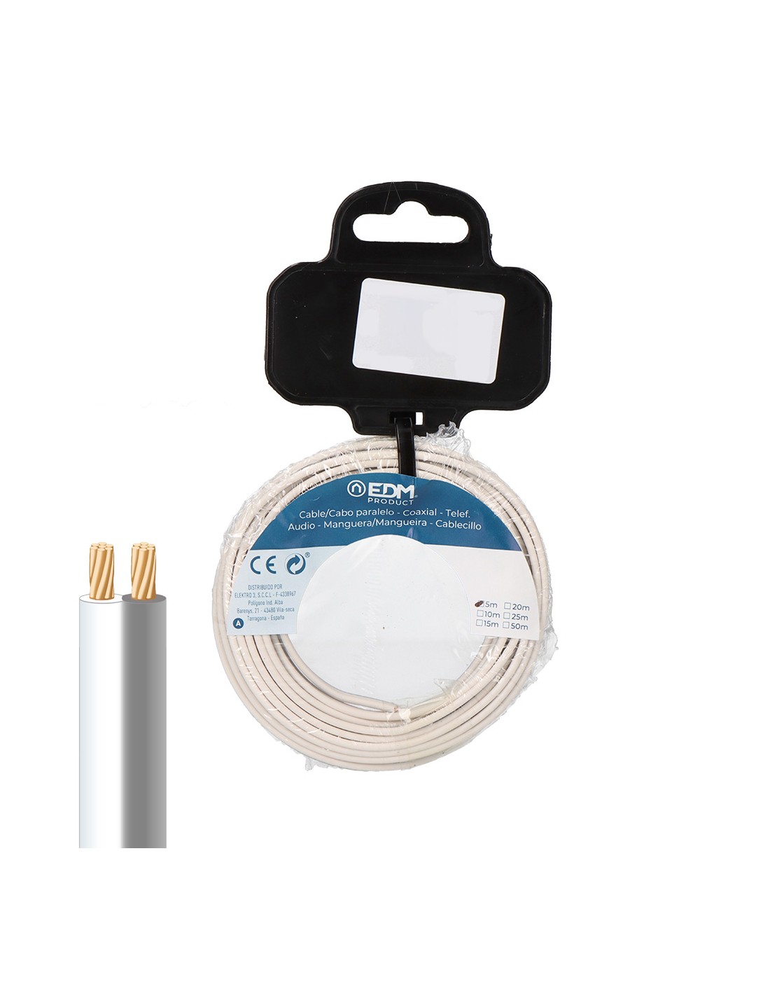 Paralelo blanco y gris 2x0,75mm "audio" euro/m (bobina pequeña ø180x60mm)