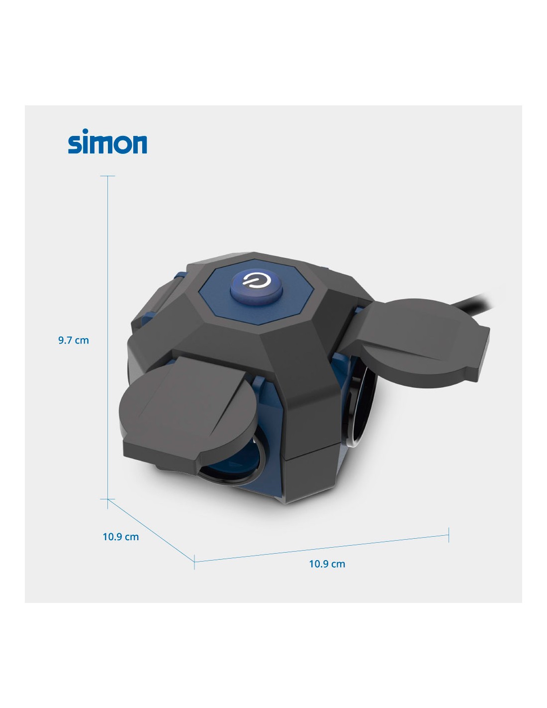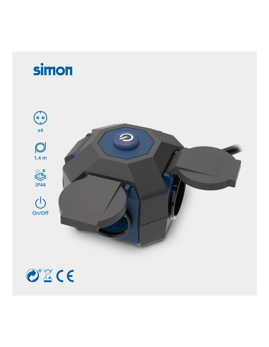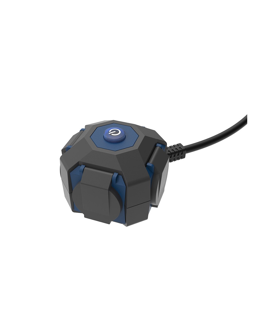 Base múltiple expert 4 tomas schuko, con tapas, con interruptor, ip44, 1,5 m de cable h07rn-f 3g1,5 mm, 16a 230v~, máx. 3680 w, orificio para uso con trípode, imán y gancho para colgar negro/azul. 109 x 109 x 97 mm - ø116 mm