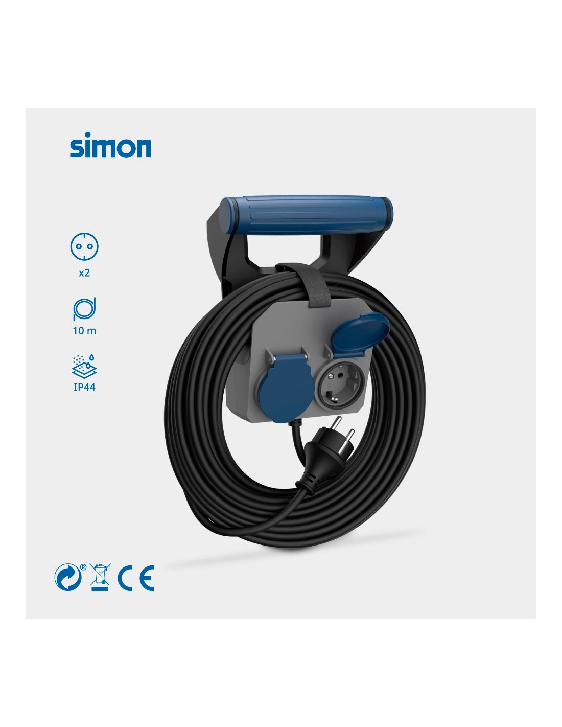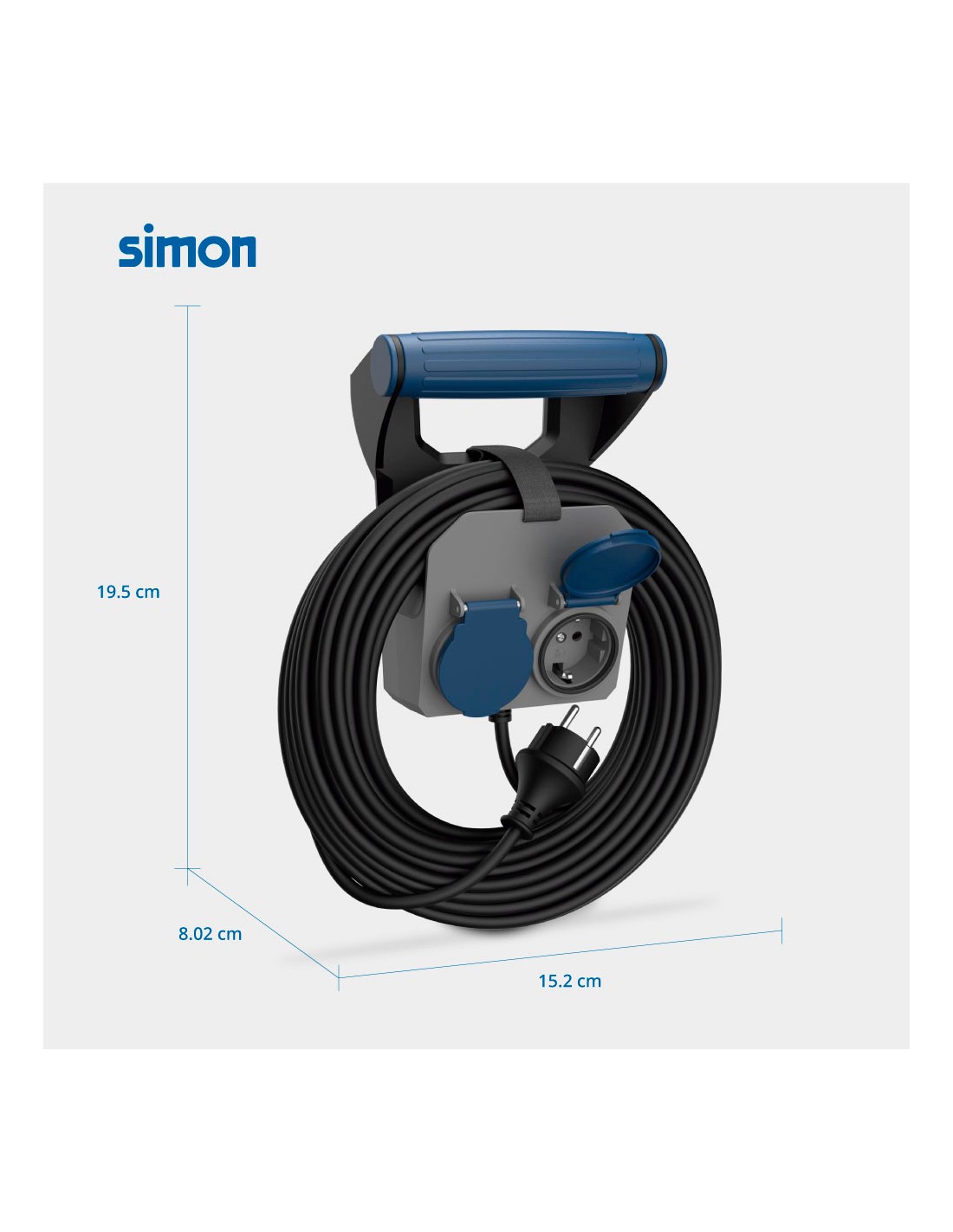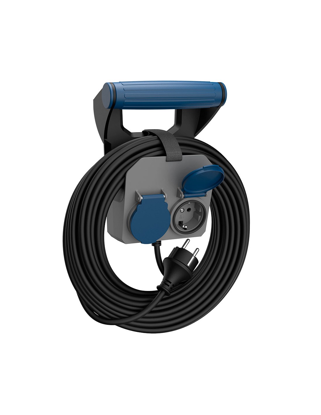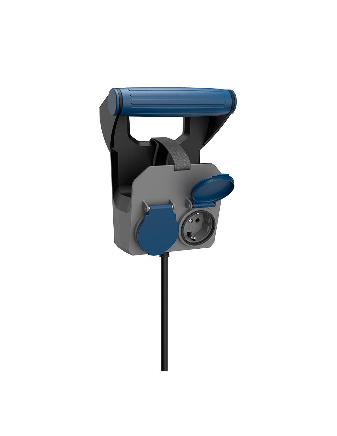 Base múltiple expert de pared 2 tomas schuko, con tapas, ip44, 10 m de cable h05rr-f 4g1,5 mm, máx. 3680 w, 16a 230 v~ 50hz, colgable en pared gris/azul/negro 195 x 152 x 80,2 mm