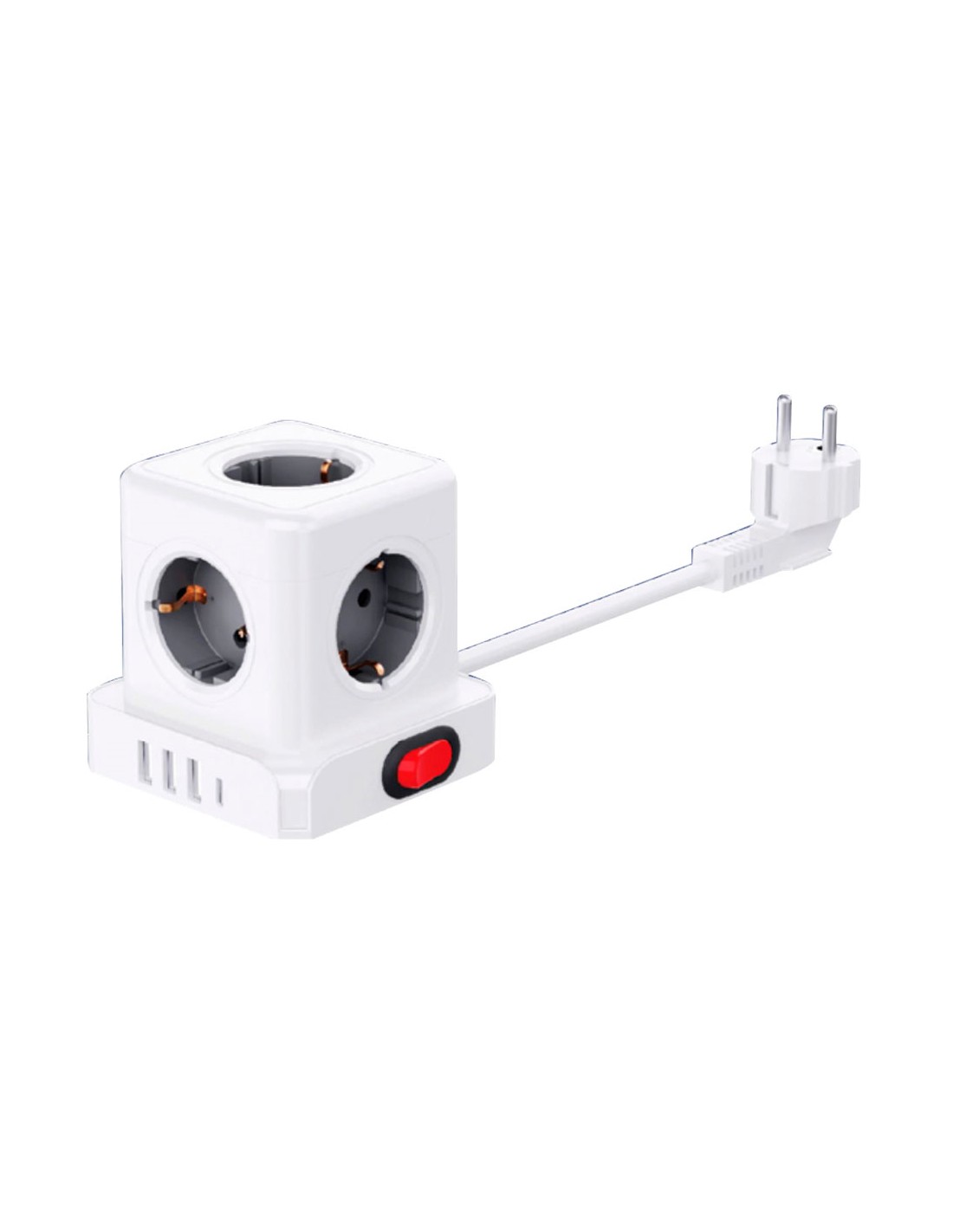 Base aérea de 5 tomas schuko con interruptor 16 a, 3680 w, 250 v~ con 1,5 m de cable (3 x 1,5 mm), color blanco, de sobremesa, incluye 4 tomas usb (3 tipo a + 1 tipo c), perfecta para colocar en la parte superior de una mesa de oficina, 92 x 92 x 92 mm