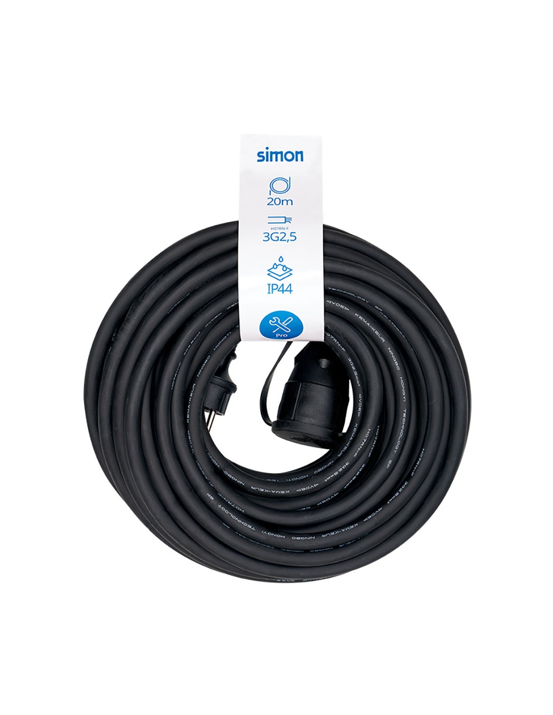 Prolongador profesional 20 m ip44 h07rn-f 3 g 2,5 mm, 1 toma con tapa cable de 20 m, certificado ip44, capacidad de hasta 16 a 250 v 3680 w, negro