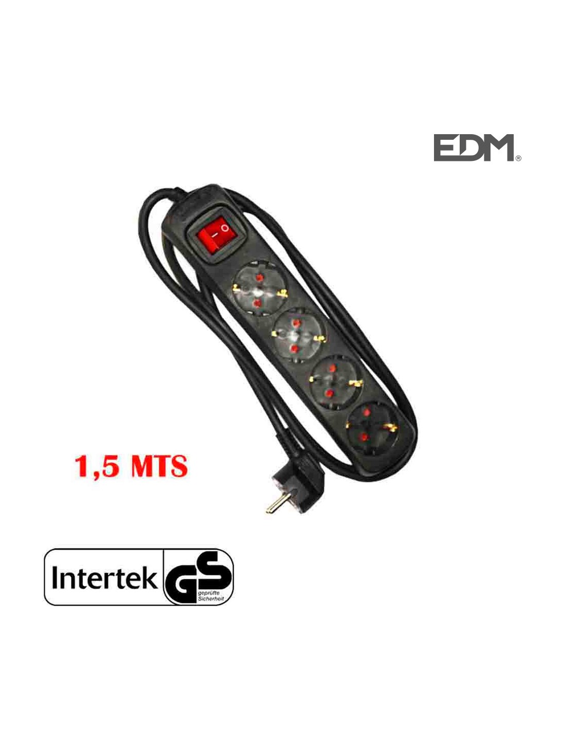 Base múltiple con 4 tomas 2p+t, con interruptor luminoso, 1,5 m cable h05vv-f 3g1,5 mm,...