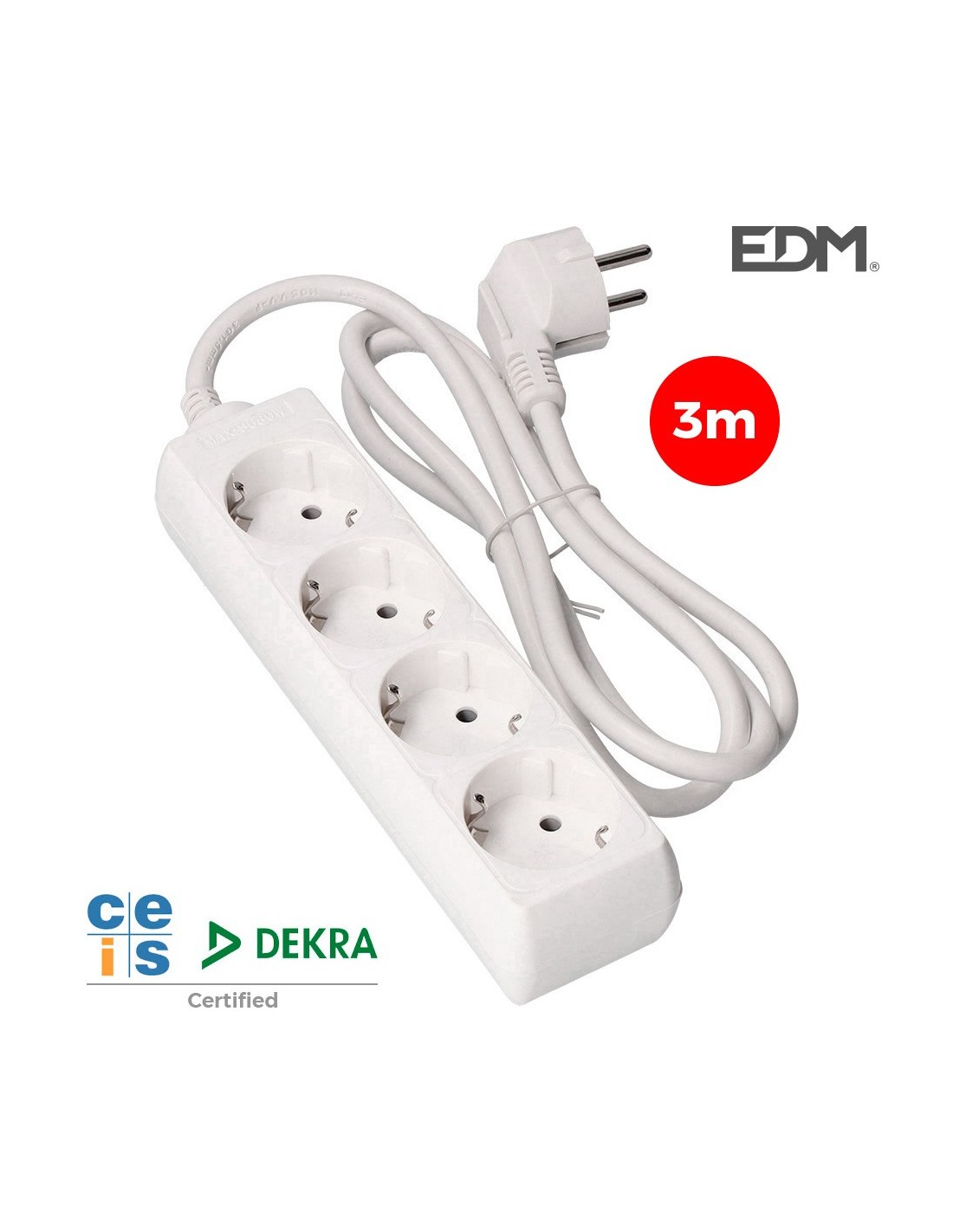 Base múltiple 5 tomas 2p+t con interruptor luminoso, 3 m de cable h05vv-f 3g1,5 mm, blanca