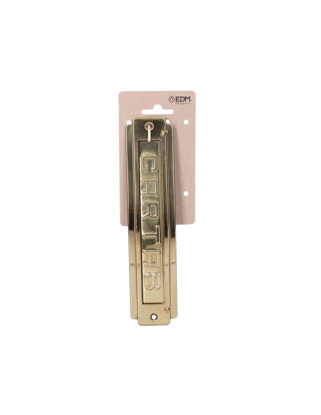 Placa de cartas para puerta de latón pulido. medida exterior 21,5 x 5 cm, medida abertura 17 x 2,4 cm, distancia entre tornillos 19,5 cm