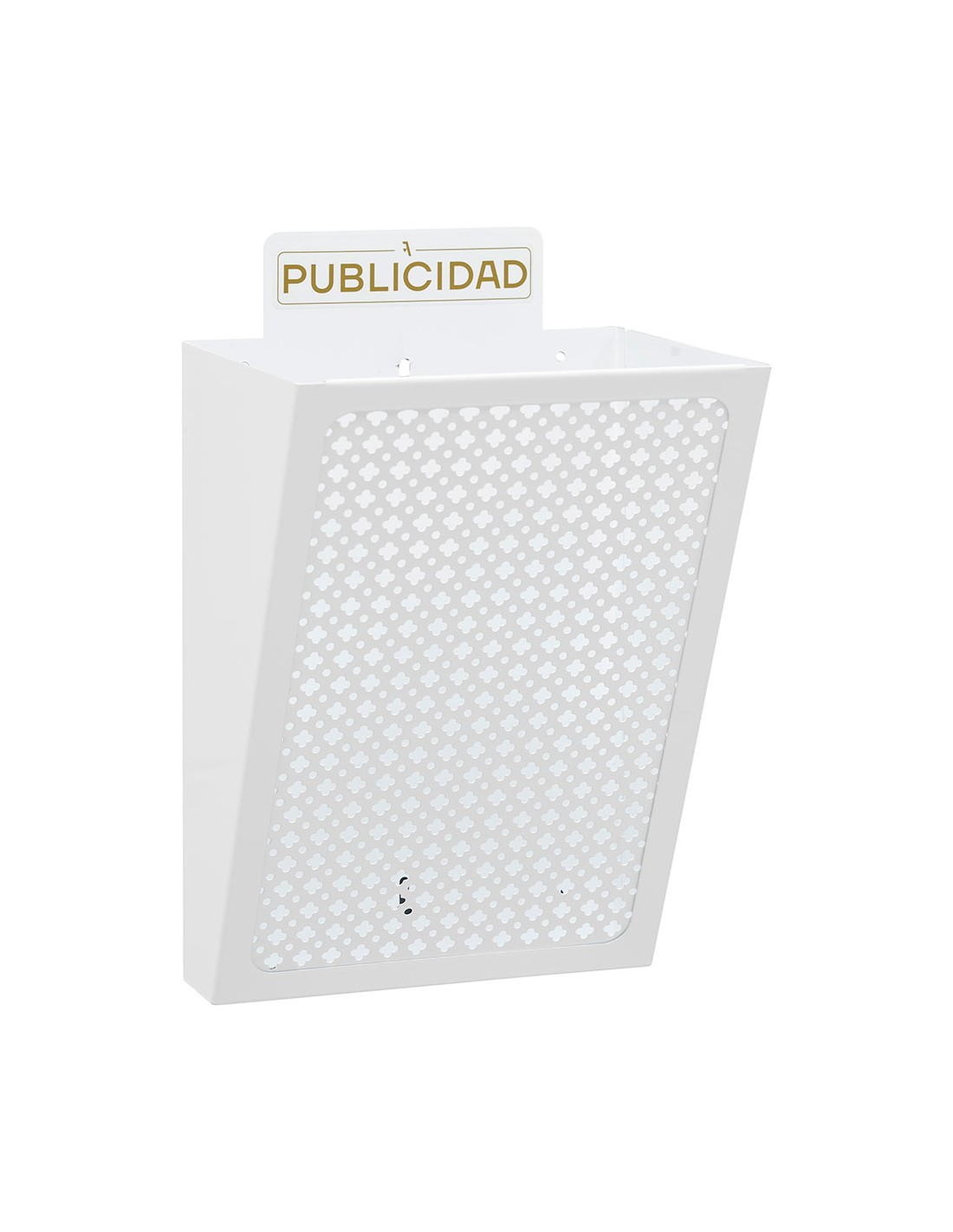 Cesta de publicidad modelo clásico, acero, blanca, para colocar en la entrada de los edificios o en el exterior de los portales para recogida de publicidad en el exterior, rejilla frontal, total visibilidad interior, capacidad 7,5 l medidas: 22 x 19 x 35,5 cm