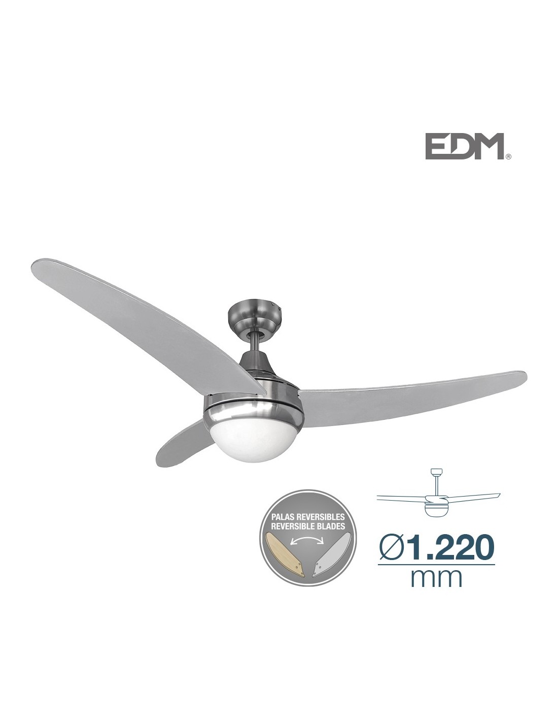 VENTILADOR DE TECHO MODELO ARAL WENGUE-NIQUEL SATINADO 50W Ø ASPAS 76 CM EDM