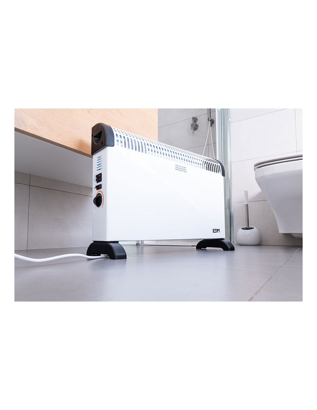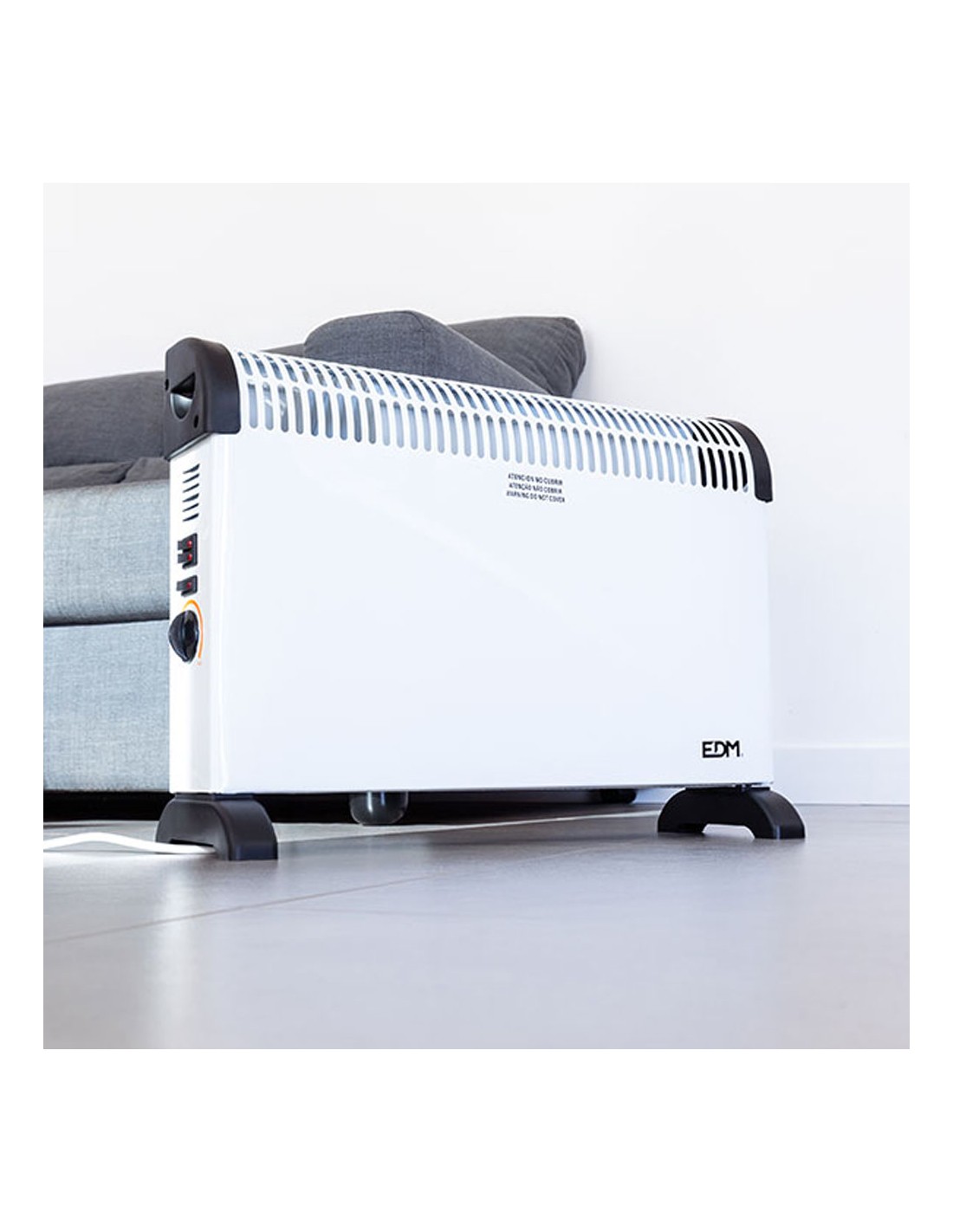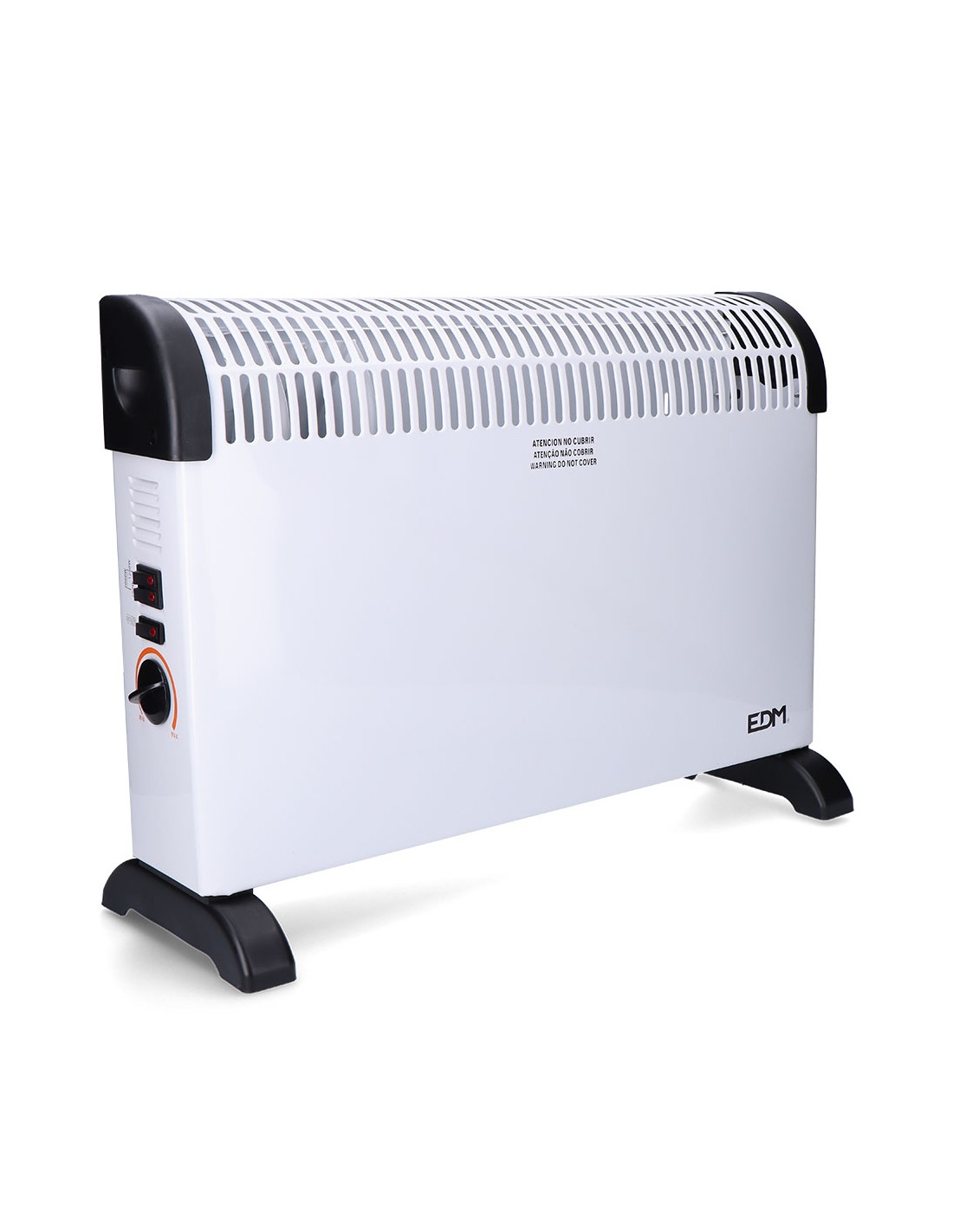 Convector de aire modelo turbo. 220 - 240 v potencia: 2000 w con 3 niveles: 750 / 1250 / 2000 w . interruptor para función turbo. termostato regulable. termofusible de seguridad. dimensiones: 62,5 x 14 x 49 cm