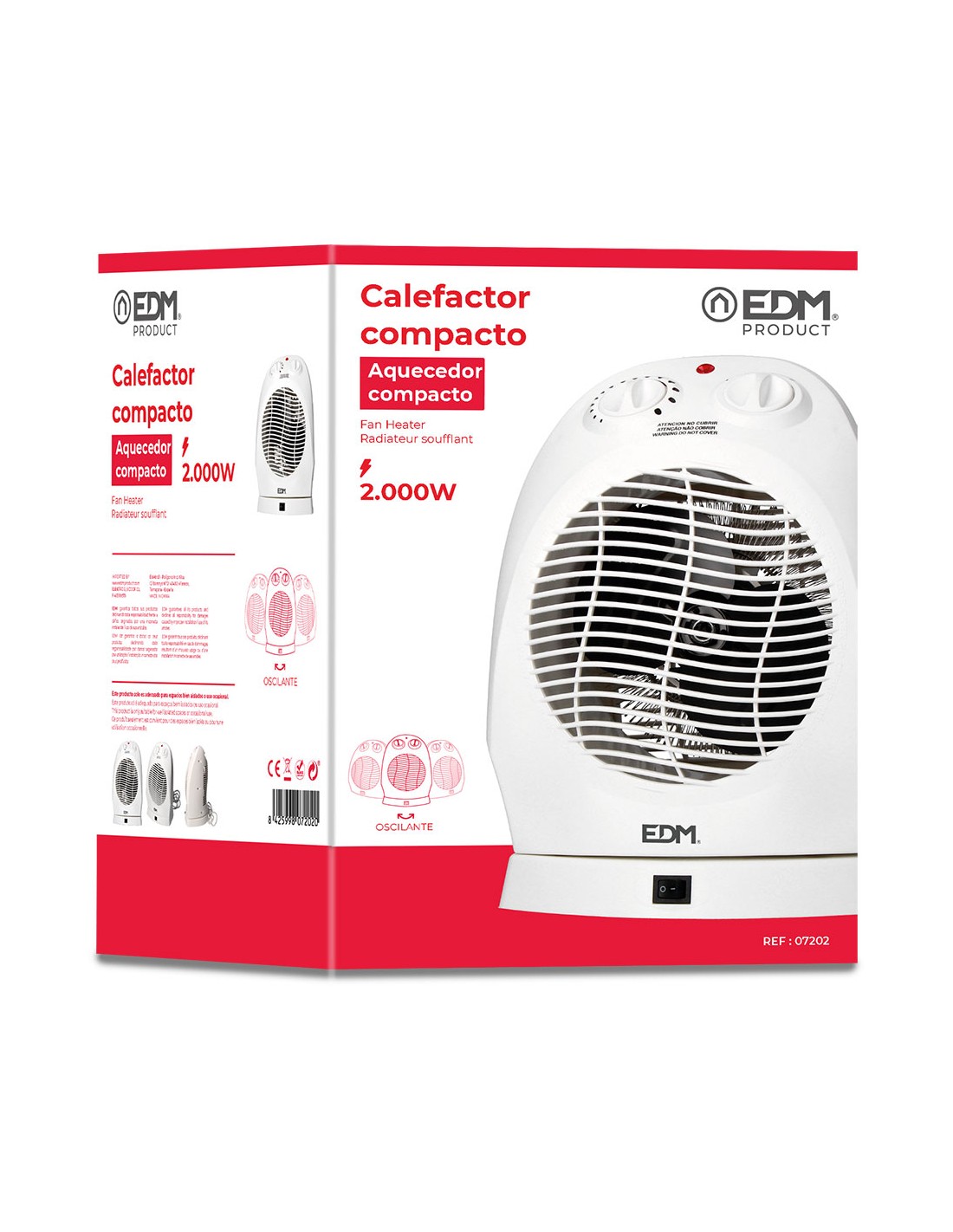 Calefactor compacto oscilante 1000 - 2000 w, 50hz, 220 - 240 v, blanco. posicion aire fresco y proteccion sobrecalentamiento. dimensiones: 22 x 18,5 x 30,5 cm