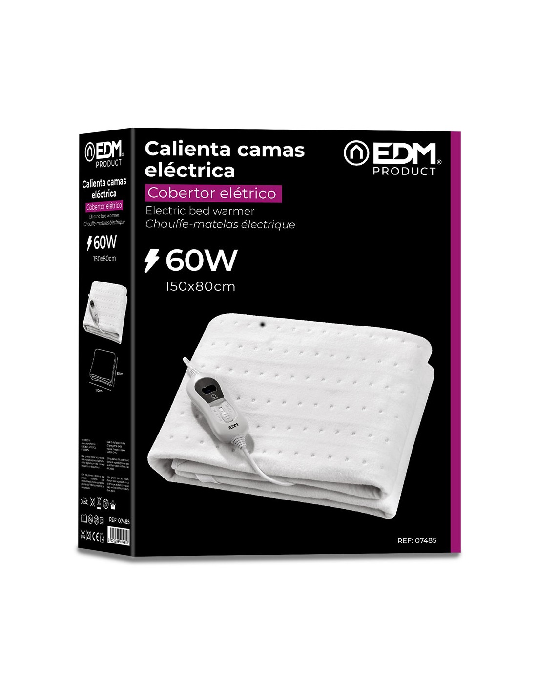 Calienta camas eléctrico 60 w, 220 - 240 v ~ 50 hz, con regulador de temperatura de 3 niveles, apagado automático en 90 min, mando digital con indicador led,100% poliester. dimensiones: 150 x 80 cm