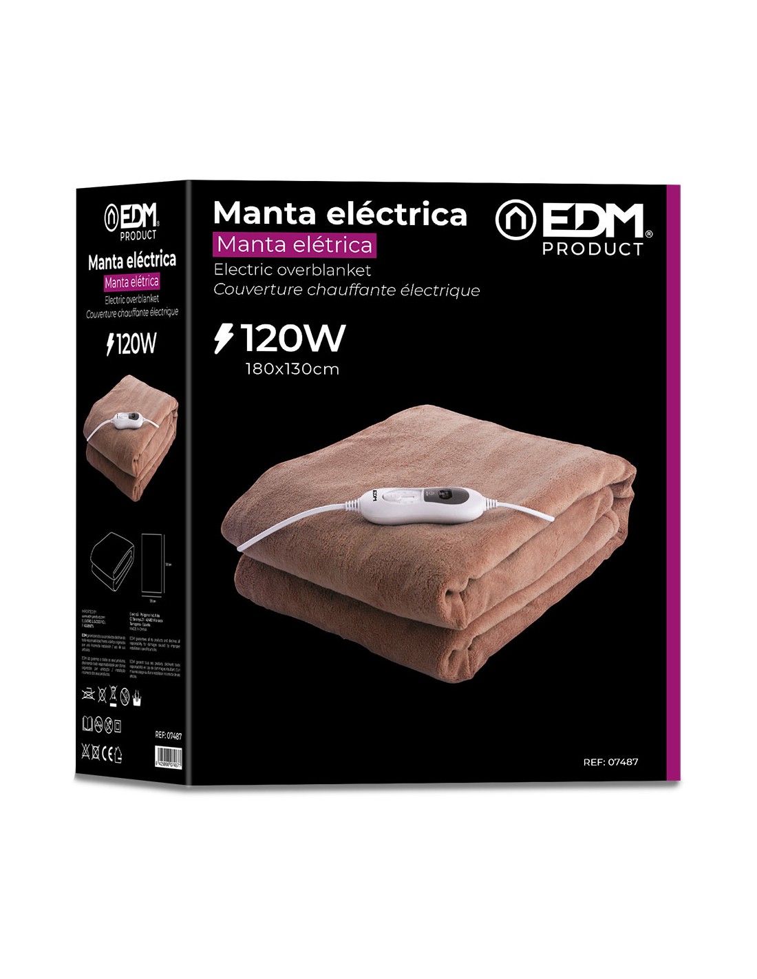 Manta eléctrica 120 w, 220 - 240 v ~ 50 hz, con regulador de temperatura de 3 niveles, apagado automático en 90 min, mando digital con indicador led, 100% poliester, funda lavable a mano, dimensiones: 180 x 130 cm (tamaño cama de matrimonio)