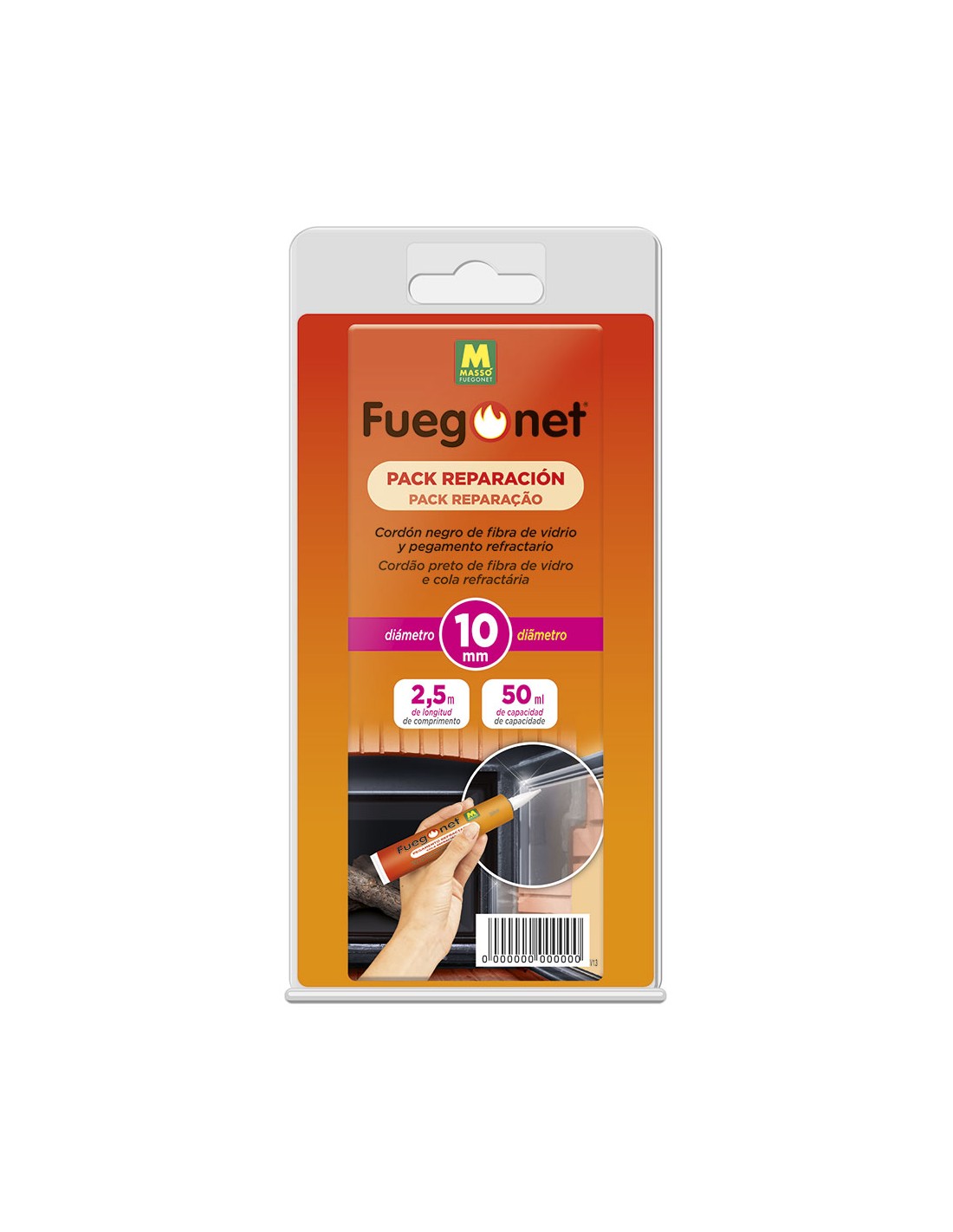 Kit reparación: cordón aislante ø10 mm x 2,5 m + adhesivo 50 ml. soportan 650°. ideal para rapida reparación del cordón que sirve como junta aislante en chimeneas, inserts, estufas calderas, etc y mantenerlas asi en perfecto estado de uso evitando humos y perdidas de calor