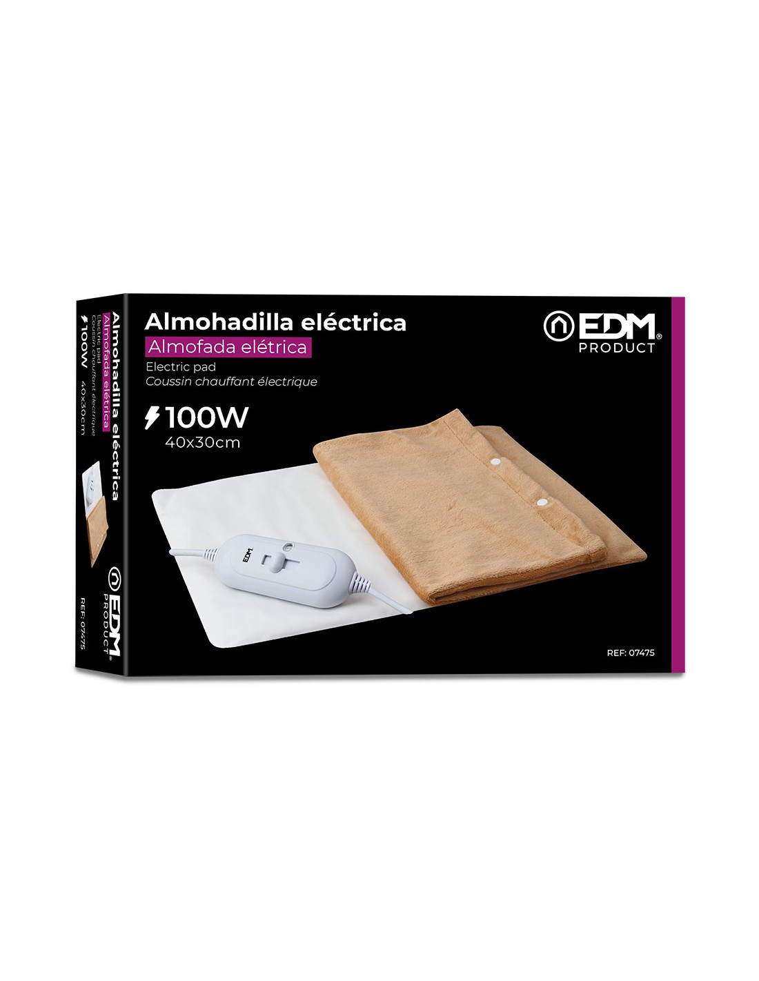 Almohadilla electrica 100 w, 220 - 240 v 50 hz. con apagado automático en 90 minutos. funda lavable a mano. protección contra sobrecalentamiento. medidas: 40 x 30 cm