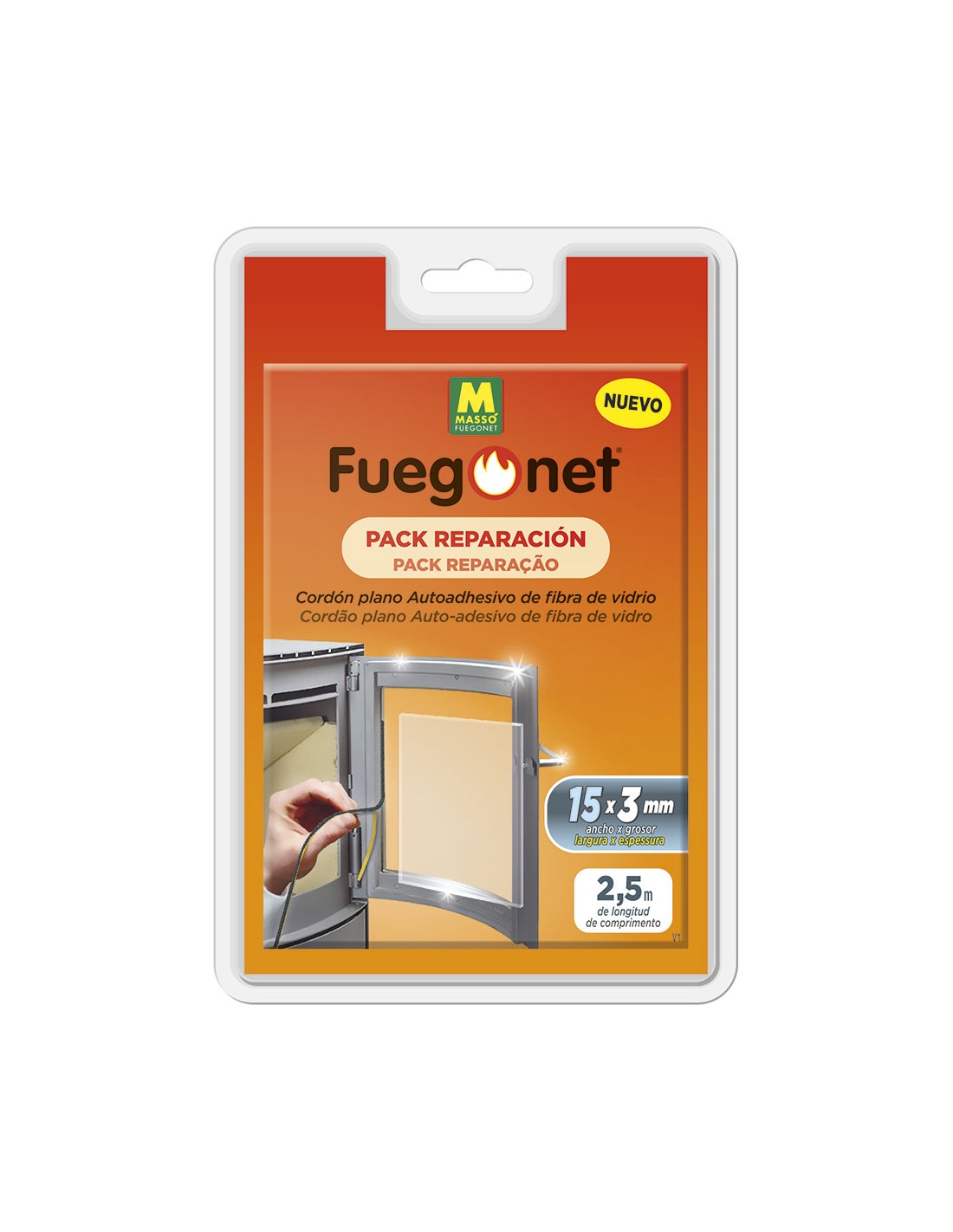 Pack reparacion cordon plano autoadhesivo de fibra de vidrio 15 x 3 mm 2,5 m. dispone en una de sus caras de una cinta autoadhesiva por lo que no es necesario el uso de pegamentos adicionales. indicado para el montaje de estufas entre el cristal y la puerta de la estufa. por seguridad reemplace el cordon una vez al año