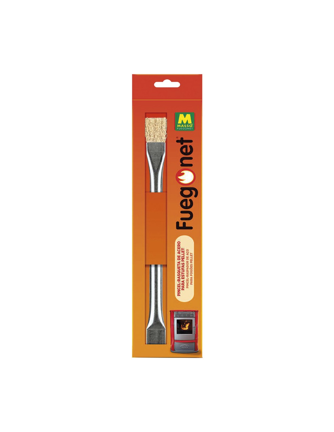 Pincel+ rasqueta para quemador de estufas de pellet. fabricado en acero para mayor durabilidad y eficiencia en la limpieza. mediante la rasqueta se desincrustan las impurezas mas dificiles para despues, mediante el pincel, terminar de limpiar el quemador. producto muy util y practico para la limpieza de las estufas de pellets