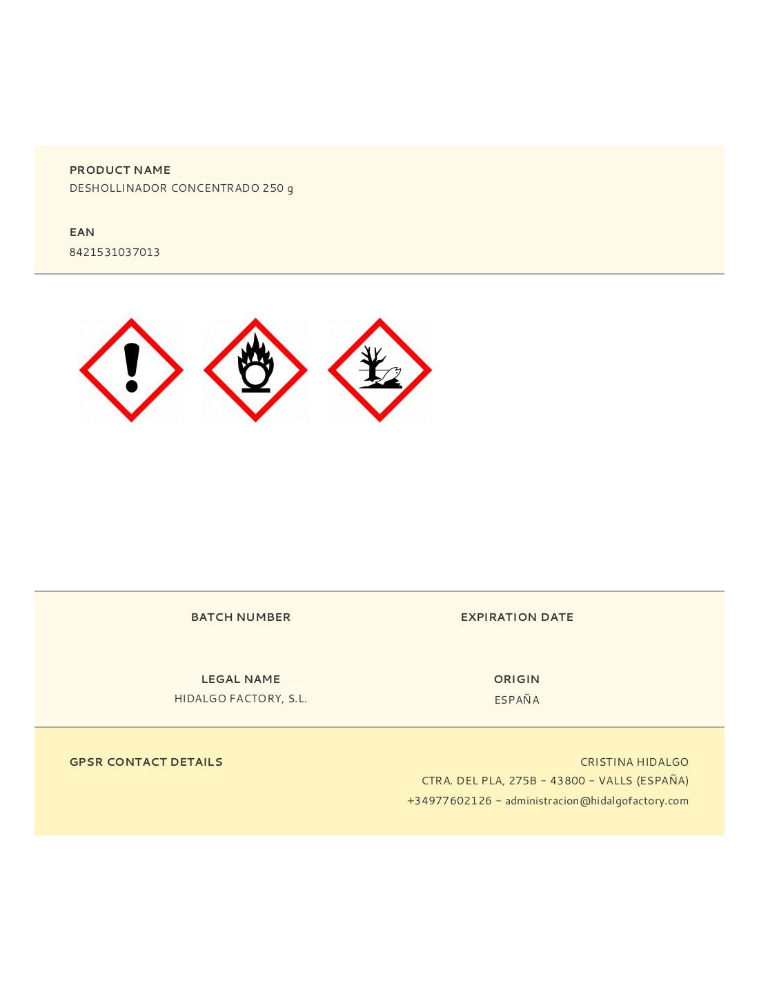 Deshollinador concentrado 250g. ideal para chimeneas, estufas de leña o carbón, calderas de gas-oil