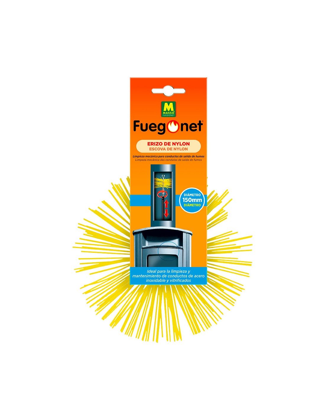 Okfuego kit deshollinador mecánico 4 x varilla 1,40 m (largo total 5,6 m) + erizo acero...