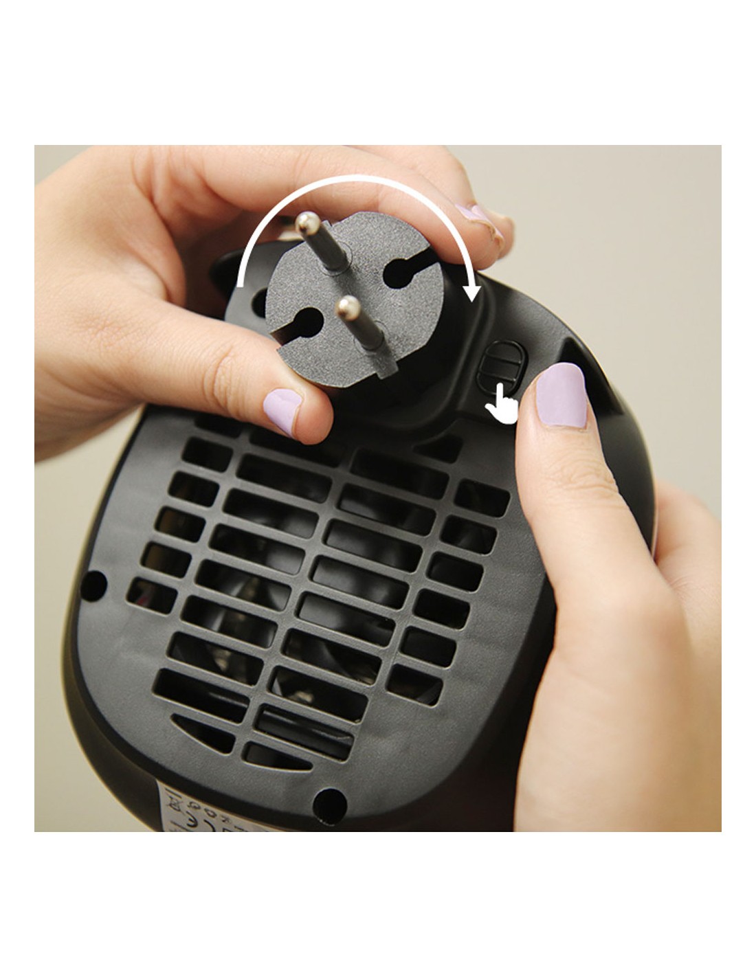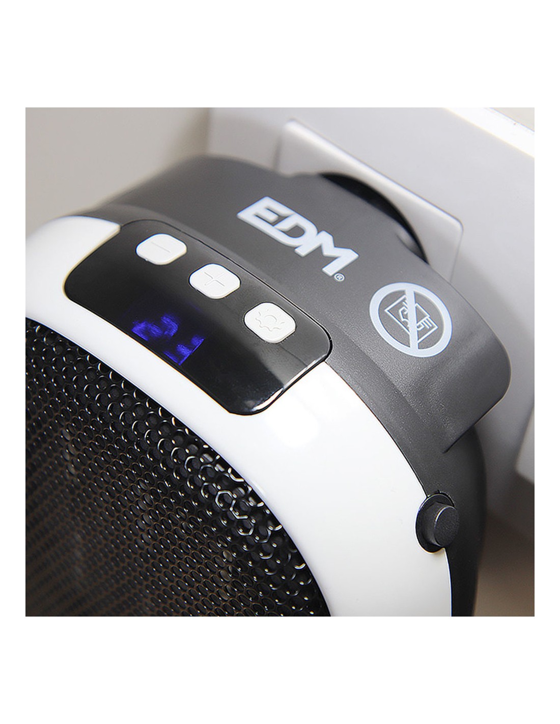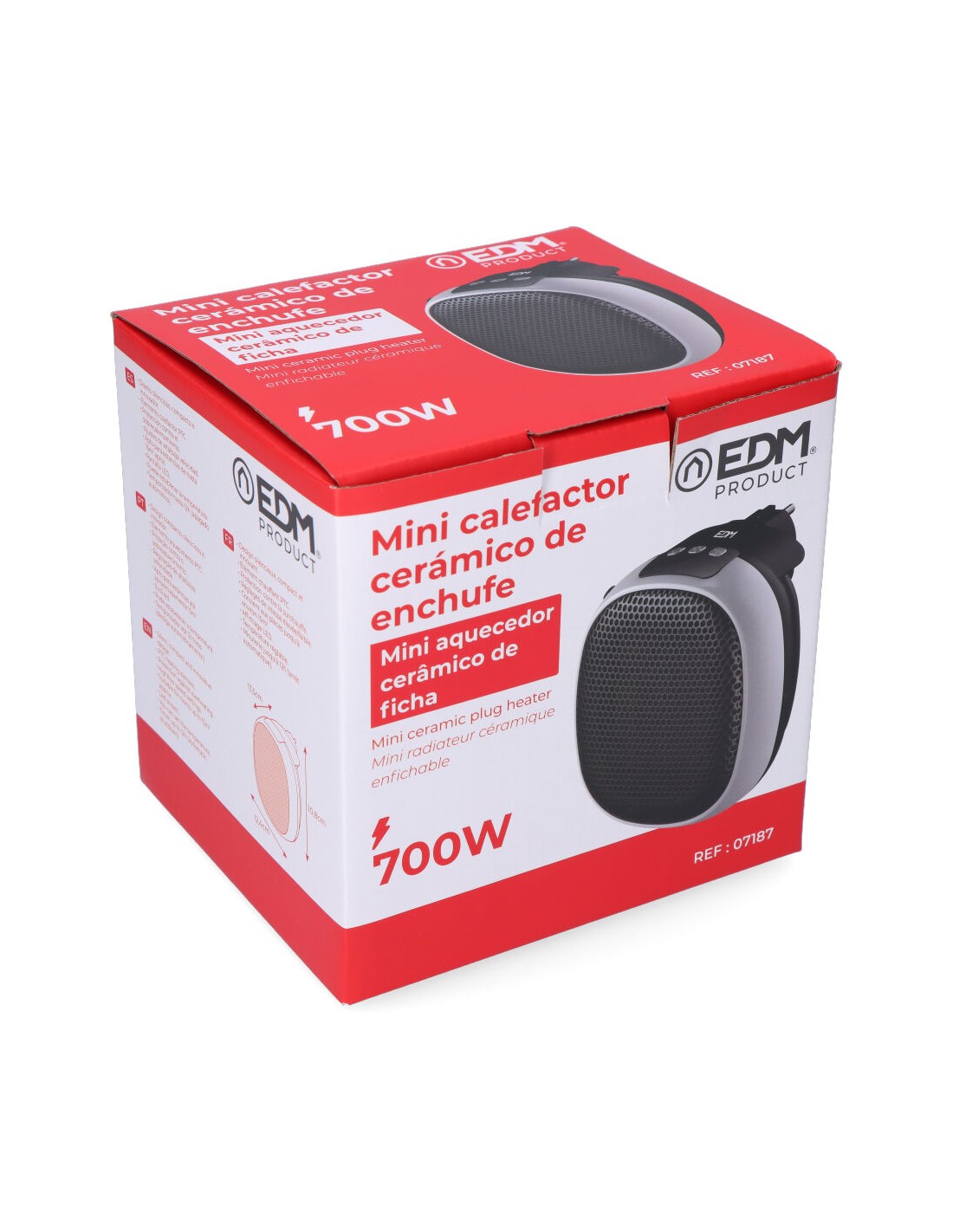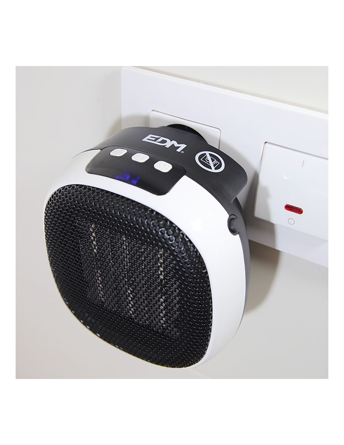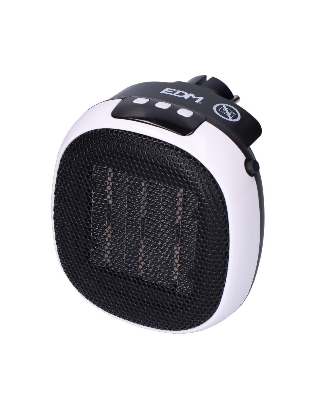Mini calefactor cerámico 700 w con clavija trasera incorporada, dos velocidades, proteccion de sobrecalentamiento, pantalla led incorporada, programador de 12 h, función ventilador. dimensiones: 12,4 x 13,5 x 10,8 cm