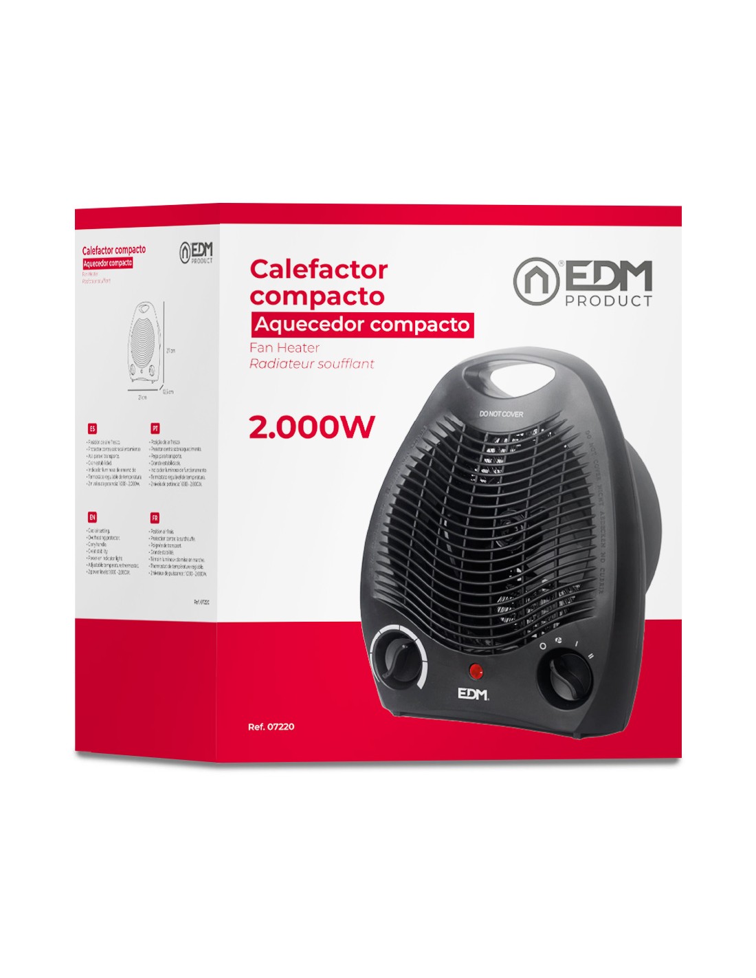 Calefactor compacto 1000 - 2000 w, 50hz, 220 - 240 v, negro. con posición de aire fresco y protector de sobrecalentamiento. dimensiones: 21 x 12,5 x 27 cm