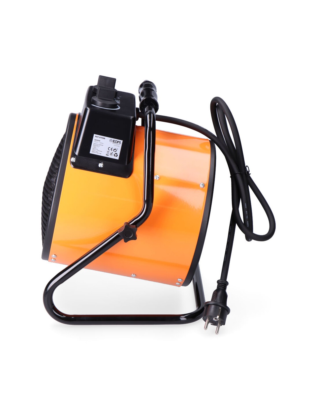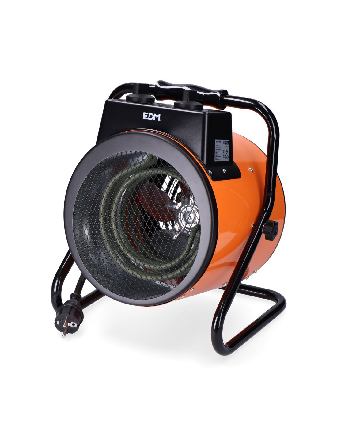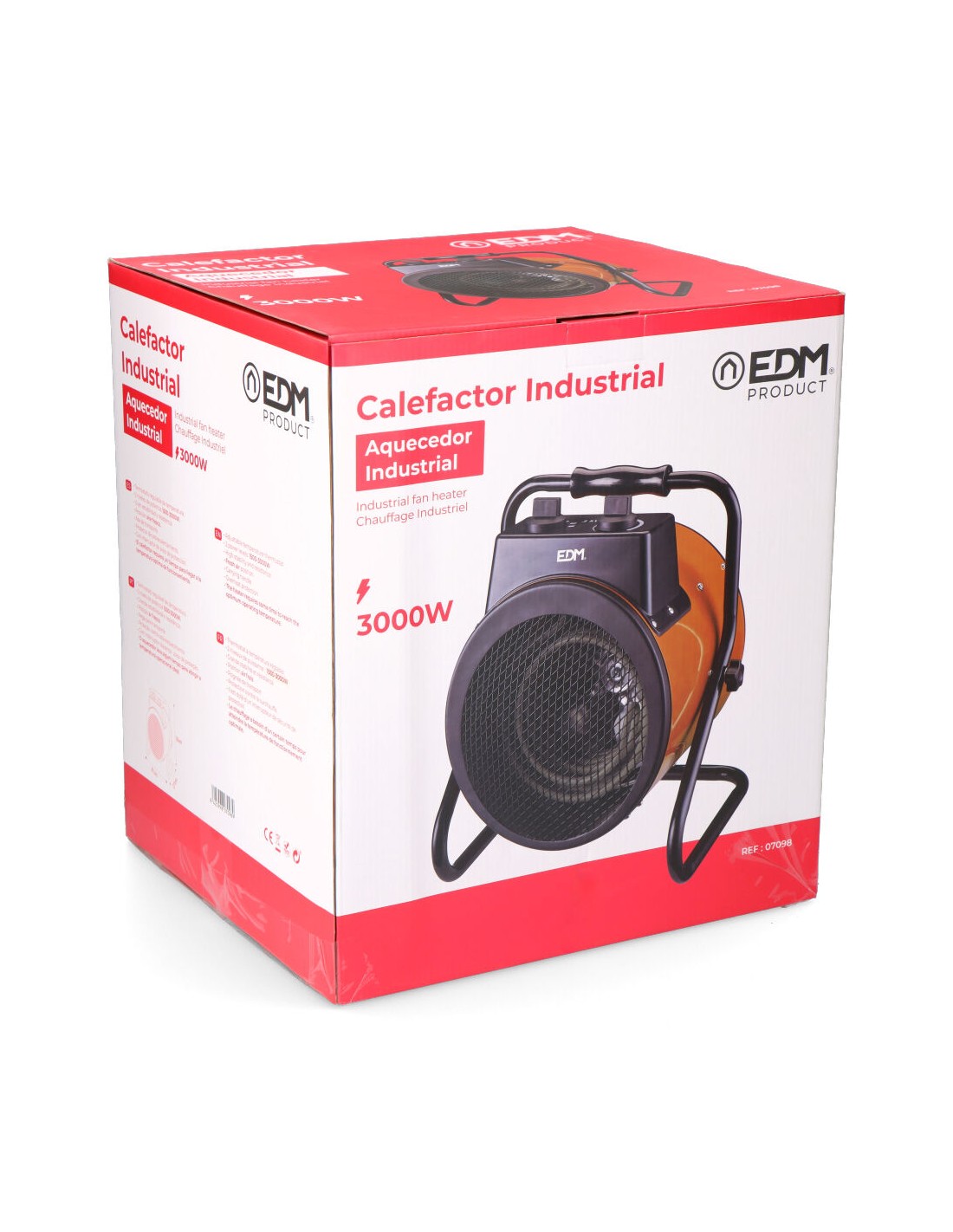 Calefactor industrial, con gran estabilidad, resistencia y asa de transporte, cuenta con un termostato regulable de temperatura, protector de sobrecalentamiento, con interruptor de aviso de protección, posición de aire fresco. tiene dos niveles de potencia: 1500-3000w, 220-240v-50hz, medidas: 31 x 27 x 35 cm. el calefactor requiere un tiempo para llegar a la temperatura óptima de funcionamiento. este producto solo es adecuado para espacios bien aislados o uso ocasional