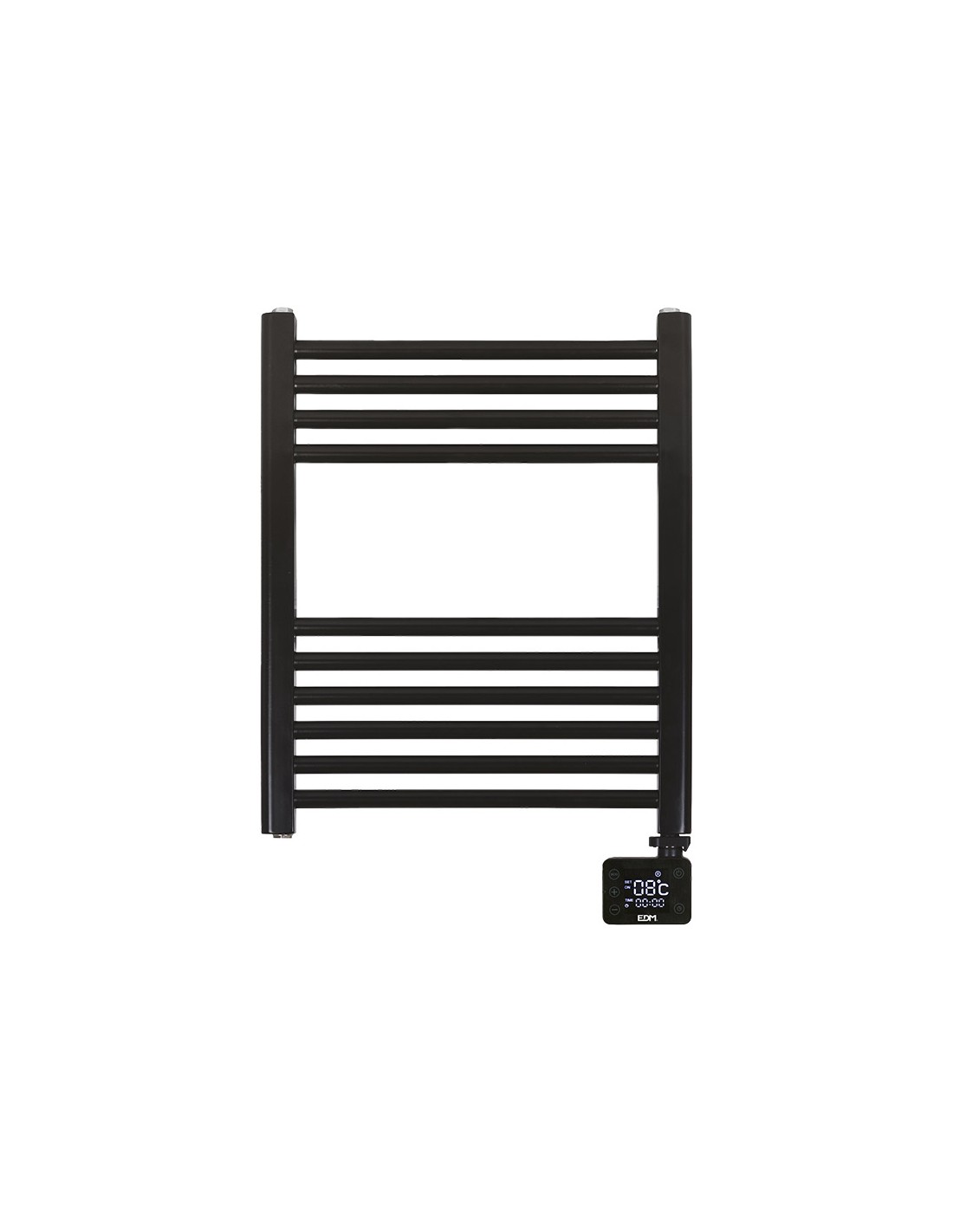 Radiador toallero eléctrico negro, 400w, 220-240v - 50/60hz. panel de control táctil led, temporizador de 24h, regulación suave de la temperatura ambiente 0-37°, regulación suave de la temperatura de las varillas calefactoras 40-70°c. 2 modos de calefacción: modo calefacción de la habitación / modo calentamiento para varillas (calienta las toallas). ip24. medida: 50 x70 x 5,3 cm. este producto solo es adecuado para espacios bien aislados o uso ocasional. se recomienda por el buen uso y mantenimiento, poner siempre de pie