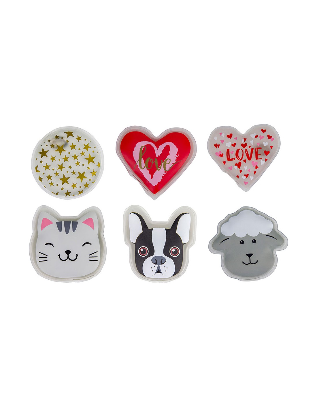 Calentador de manos reutilizable, modelos variados, duración aproximada 30 min, el líquido cristaliza y alcanza los 50-55 °c, dimensiones 11 x 10 x 1 cm aprox., presentado en expositor de 36 uds