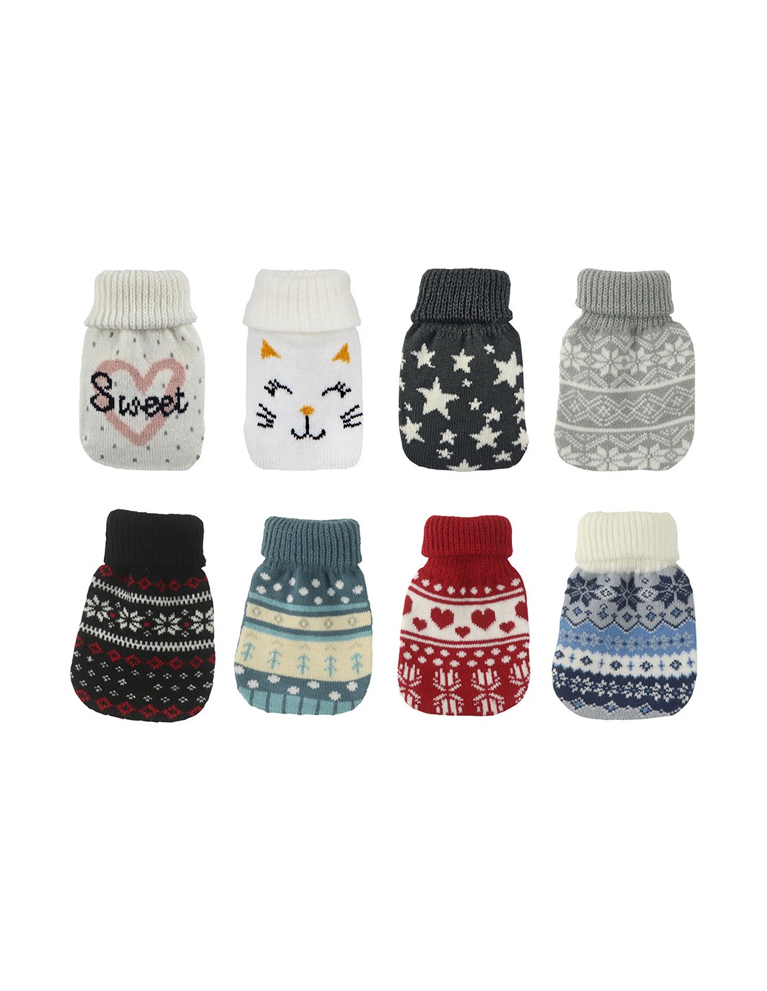 Calentador con funda de poliéster, modelos variados, reutilizable, duración aproximada 30 min, el líquido cristaliza y alcanza los 50-55 °c, dimensiones 13 x 8 x 3 cm, presentado en expositor de 32 uds