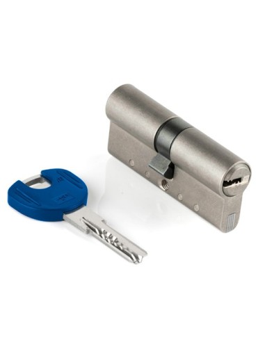 Cilindro de alta seguridad con llave de puntos para puertas de seguridad.
