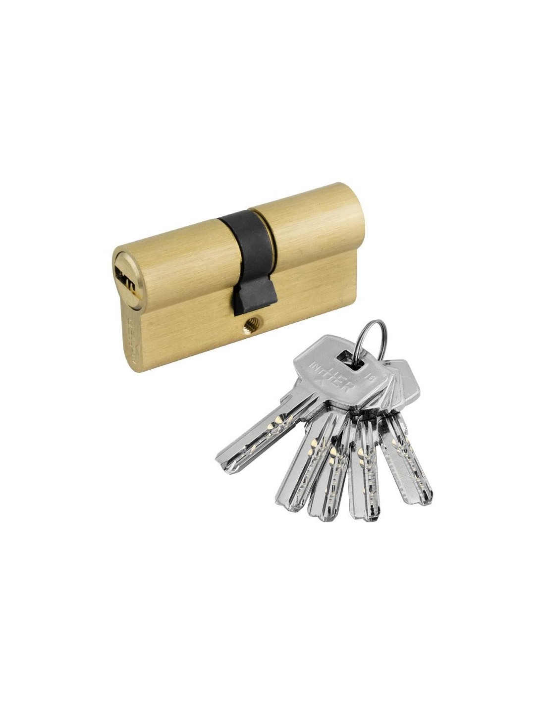 Cilindro básico de seguridad con llave de puntos plana reversible ideal para puertas de entrada.